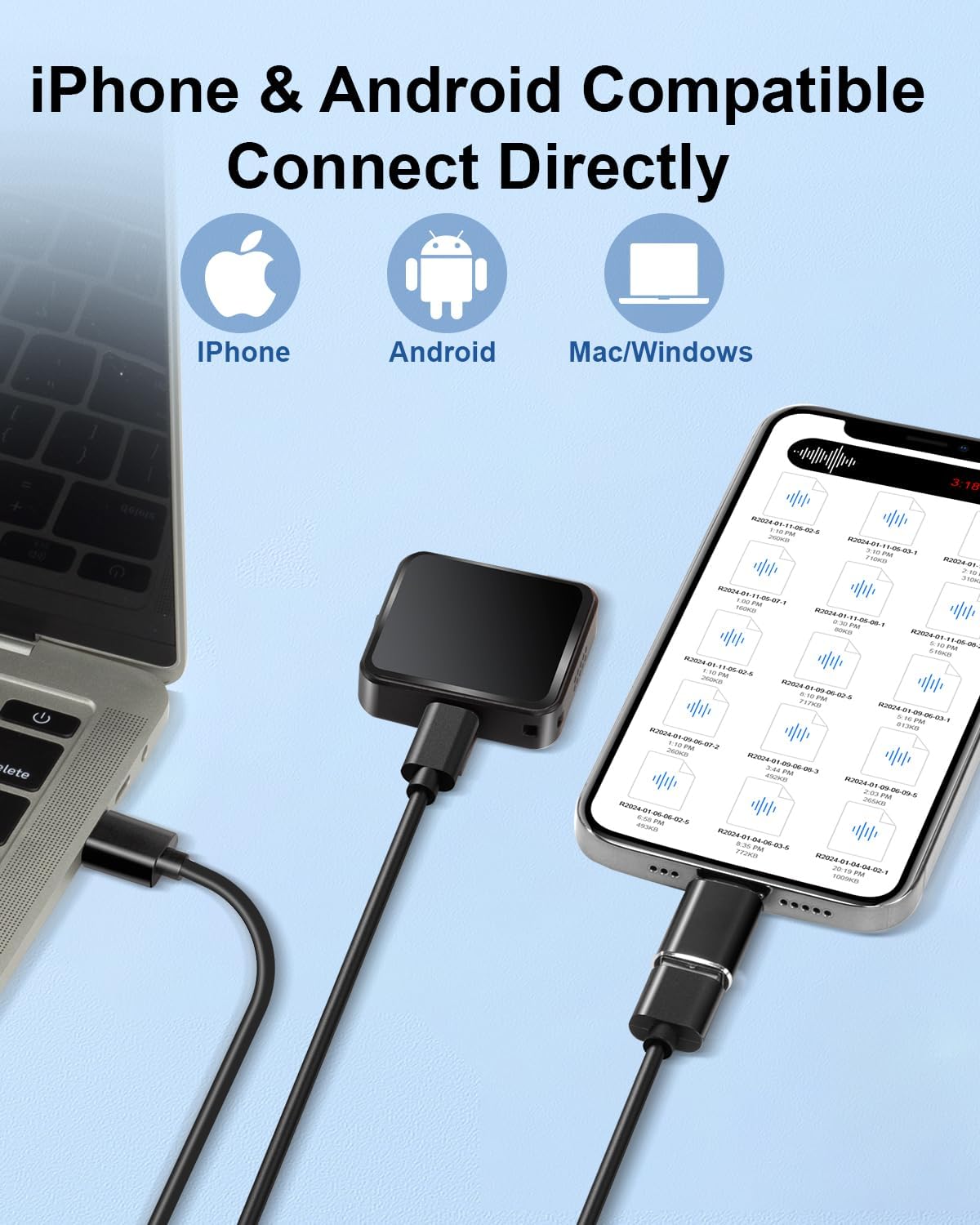 3. You can connect your cell phone/computer to play the recordings in the machine, and you can also back up each other's data.
