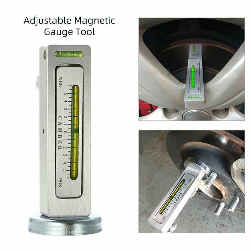 5. Professional adjustable magnetic gauge tool measures the Camber and Caster angle on the wheel hub or brake disc, suitable for automobile cars motorcycles trucks vans SUV tire repair.