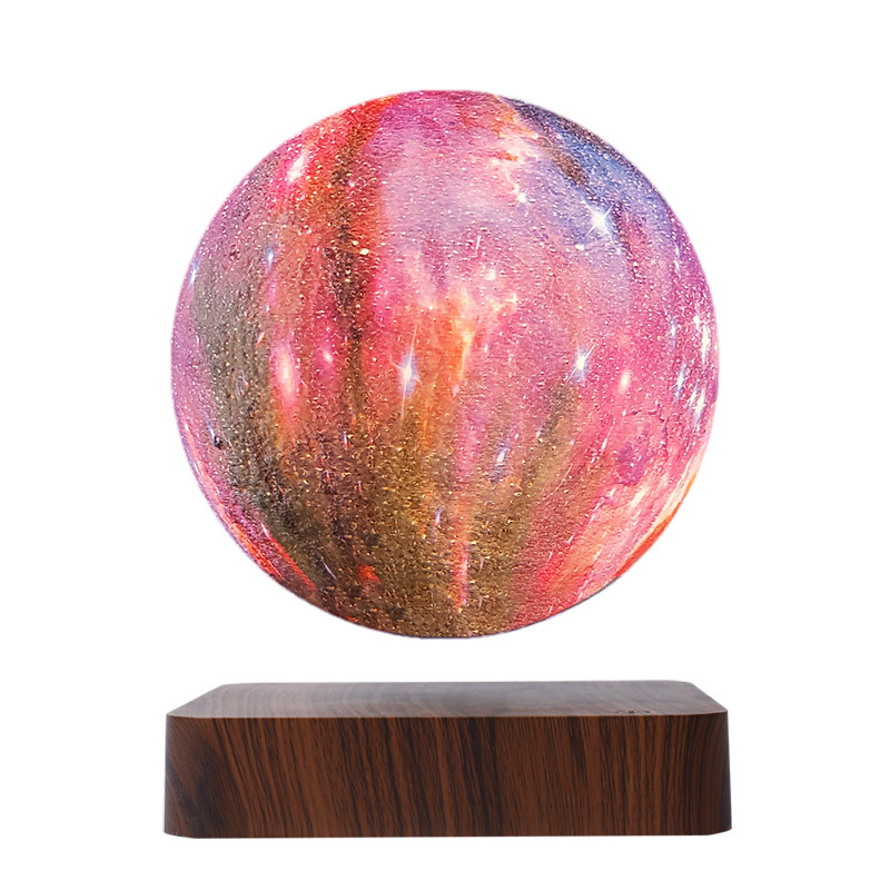 Colors: 6-inch deep wood-grain base with galactic sphere, 6-inch light wood-grain base with moon, 6-inch deep wood-grain base with moon, 6-inch light wood-grain base with Jupiter, 6-inch deep wood-grain base with Jupiter, 6-inch light wood-grain base with Saturn, 6-inch deep wood-grain base with Saturn