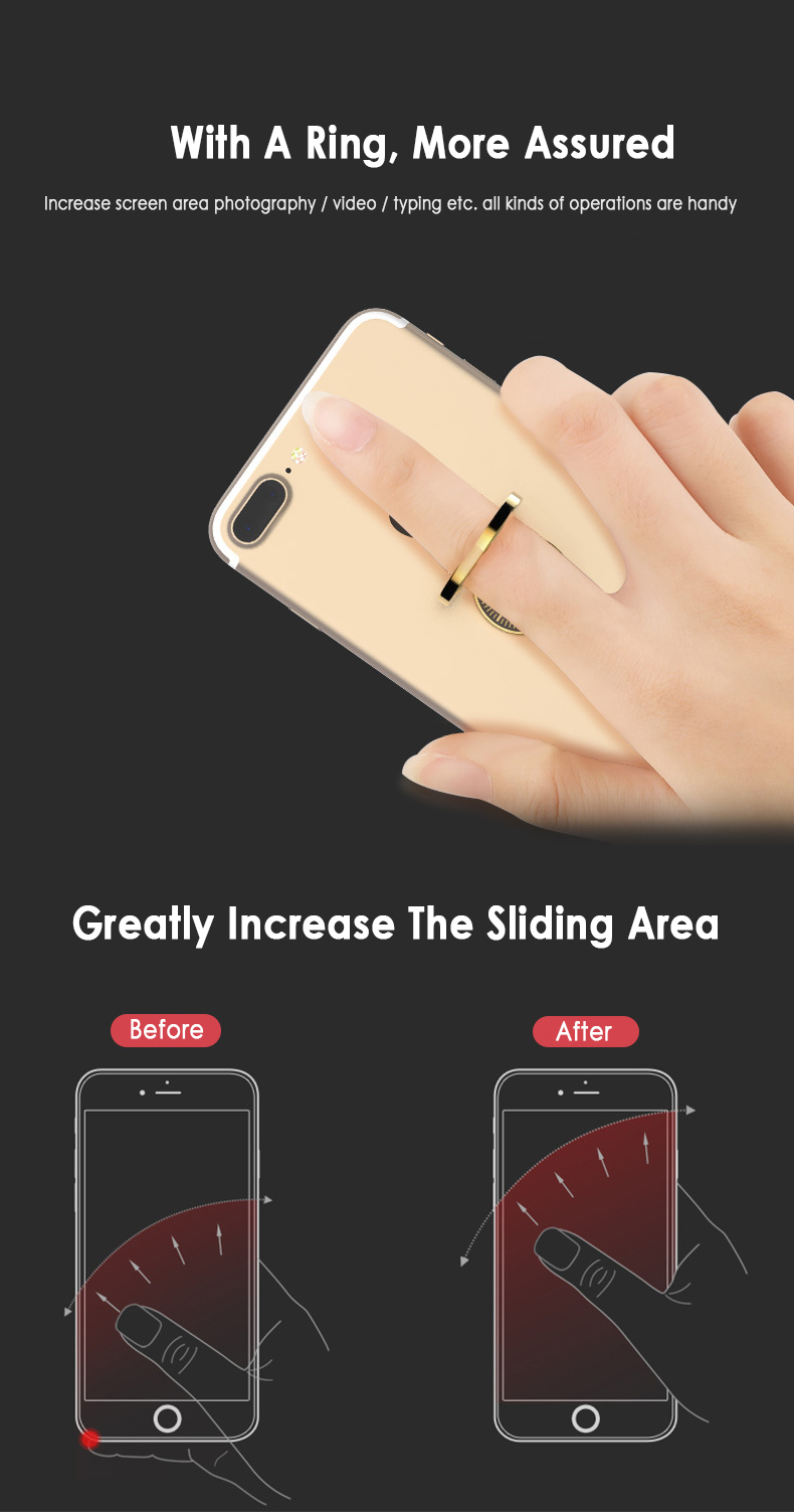 Rotate 360 degrees freely, the outer ring swings at 180 degrees, and supports the phone from different angles.