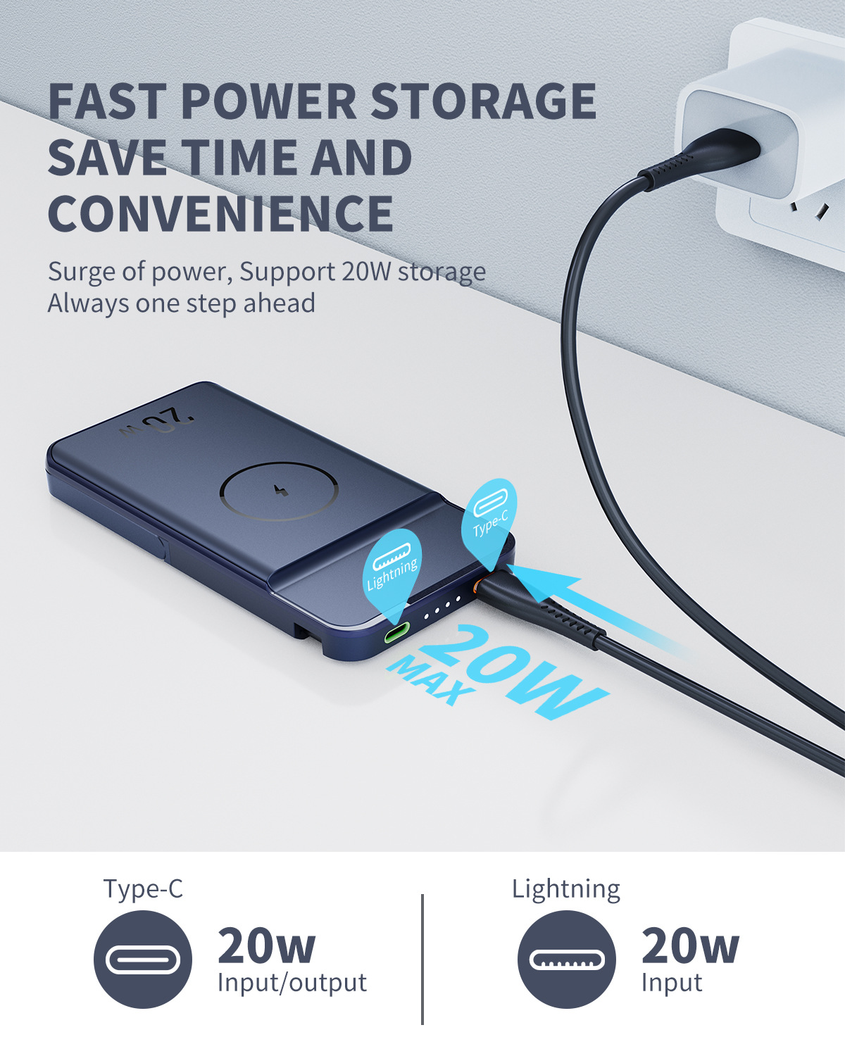 Additional features: Three-in-one bracket magnetic wireless power bank