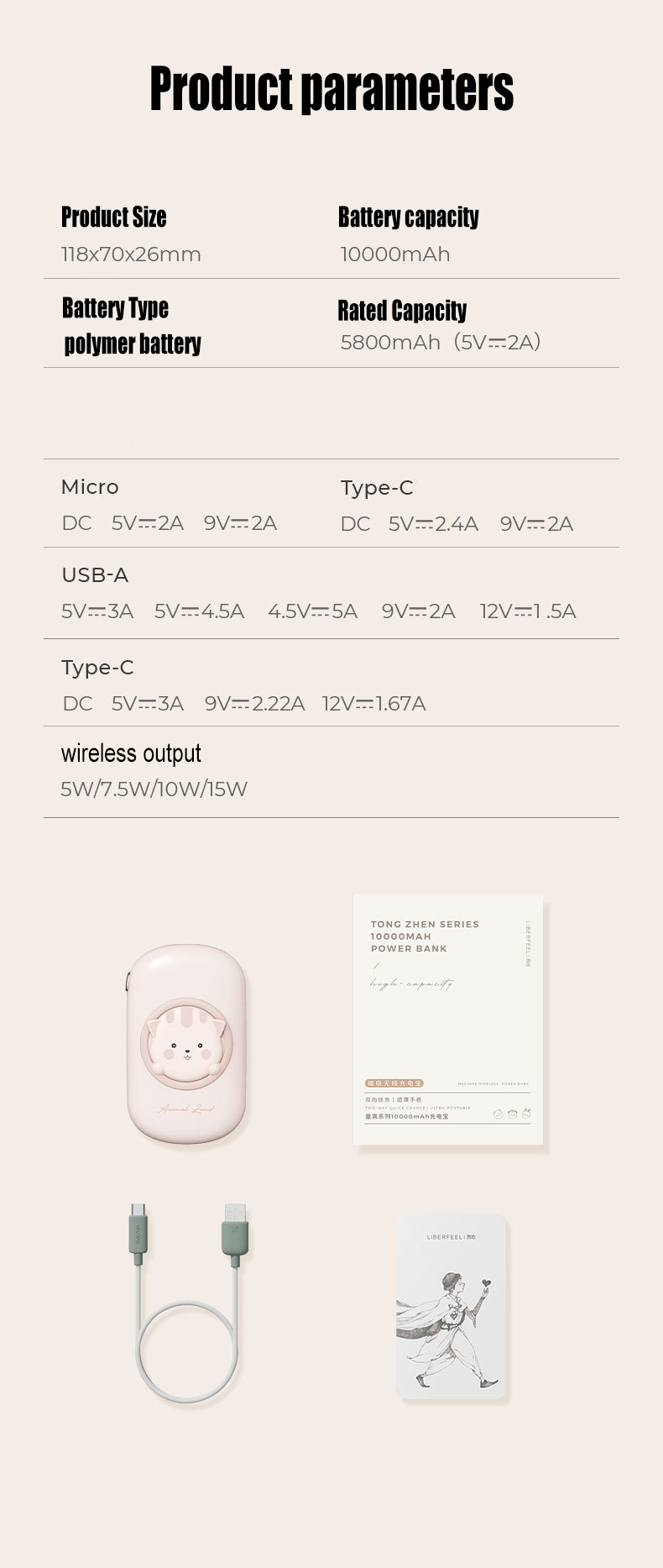 USB-A output::5V 3A /5V 4.5A/4.5V 5A/9V 2A/12V 1.5A(18W)
