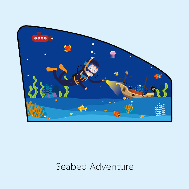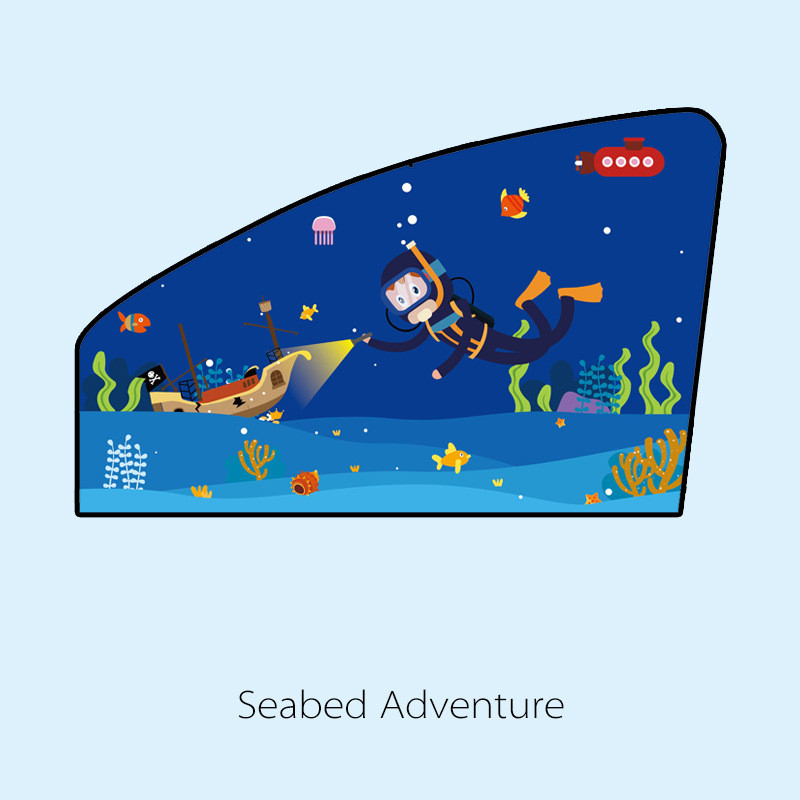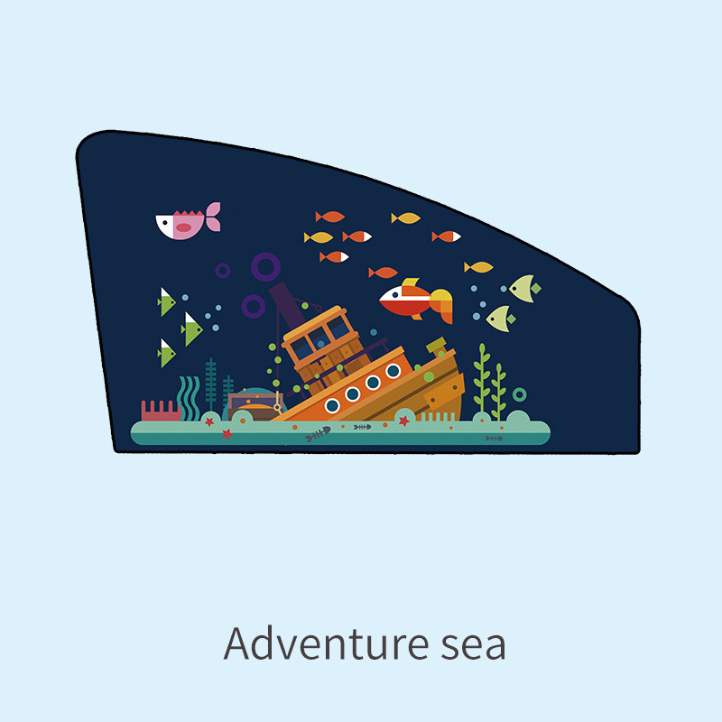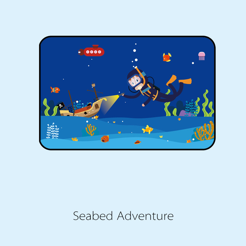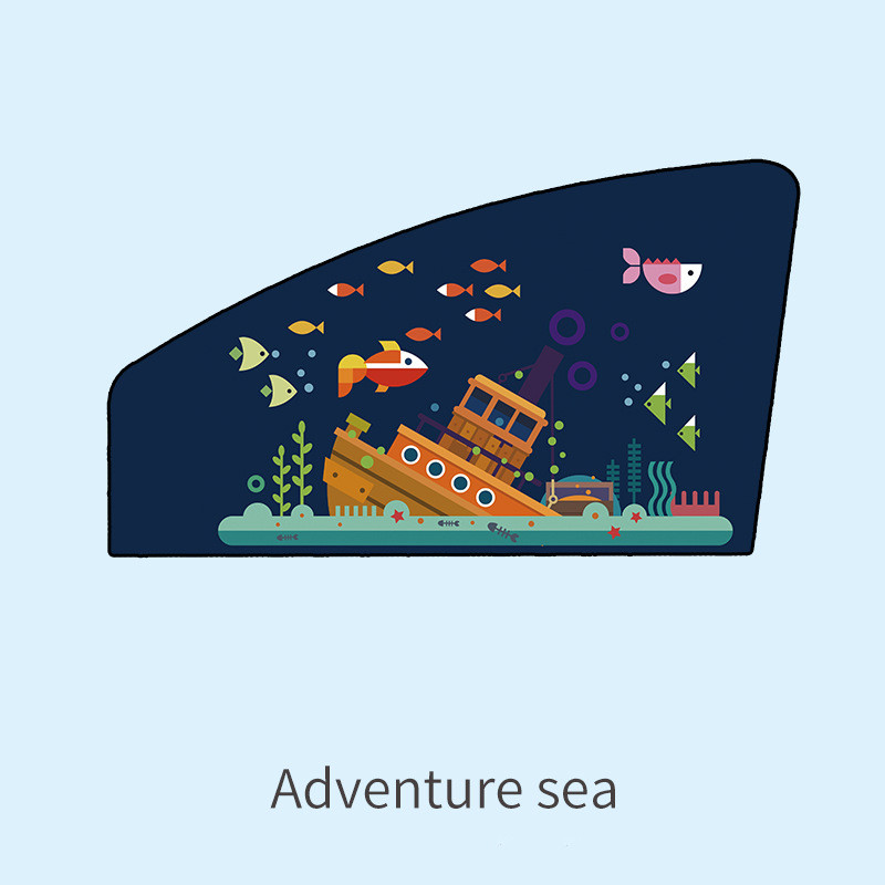 Color: :Deep sea exploration (blue), lucky three treasures (pink), space exploration (dark blue), undersea exploration (light blue)