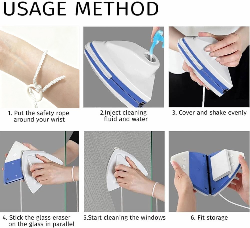 Supplied with 8. 2ft safety rope, put on your wrist before cleaning the windows to prevent falling.