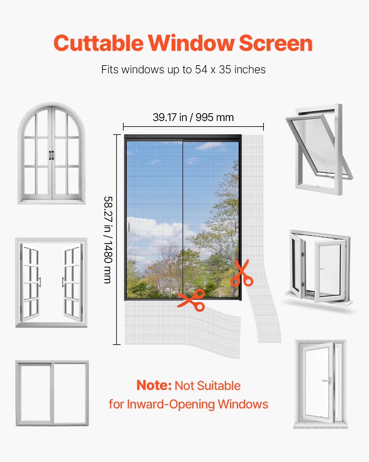 Customizable Size & Shape: This magnetic window screen fits windows up to 57 x 35 inches and can be easily trimmed to match any window shape and size, including irregular ones. Save on costly custom orders and installation time