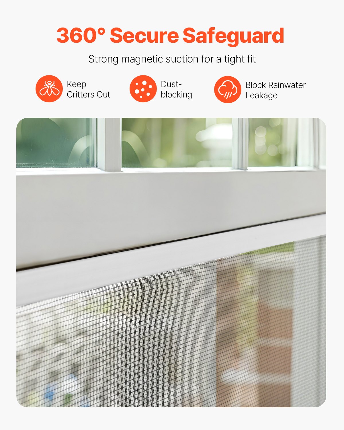 Enhanced Sealing: The window mesh screen with magnet fits seamlessly around the window frame, reinforcing its protective capabilities. It effectively avoids insects, dust, and rainwater from entering, ensuring a tight seal