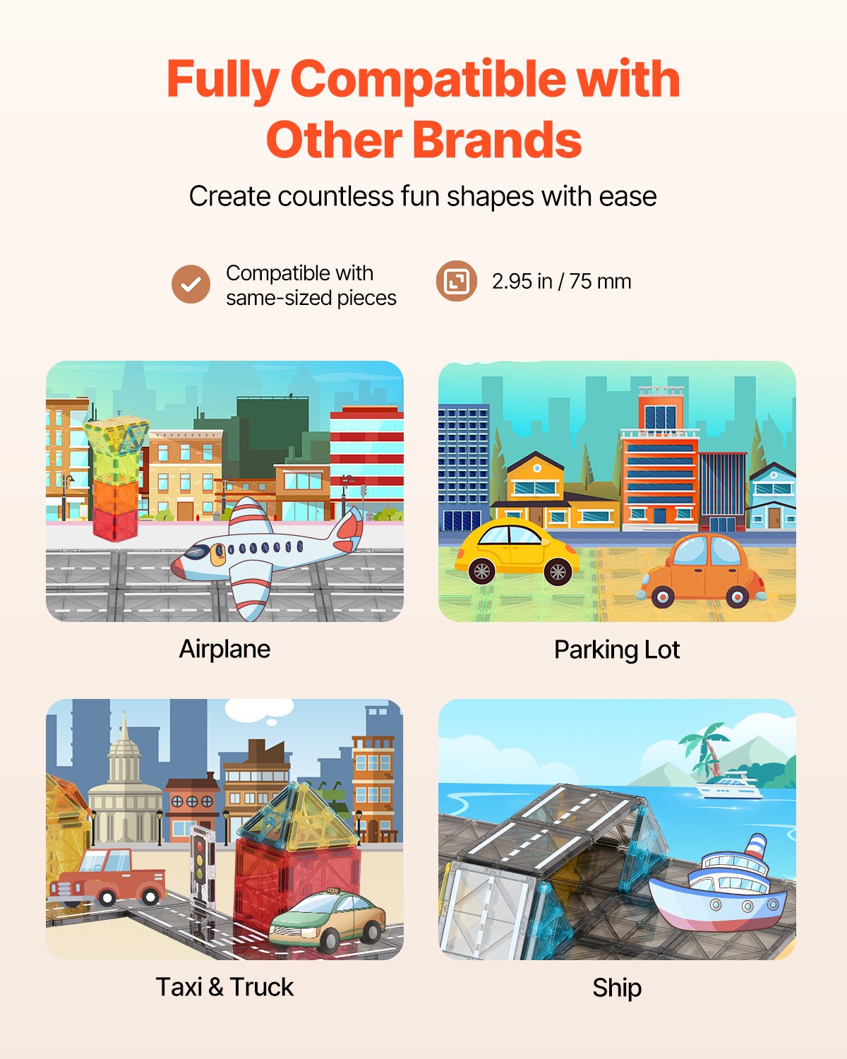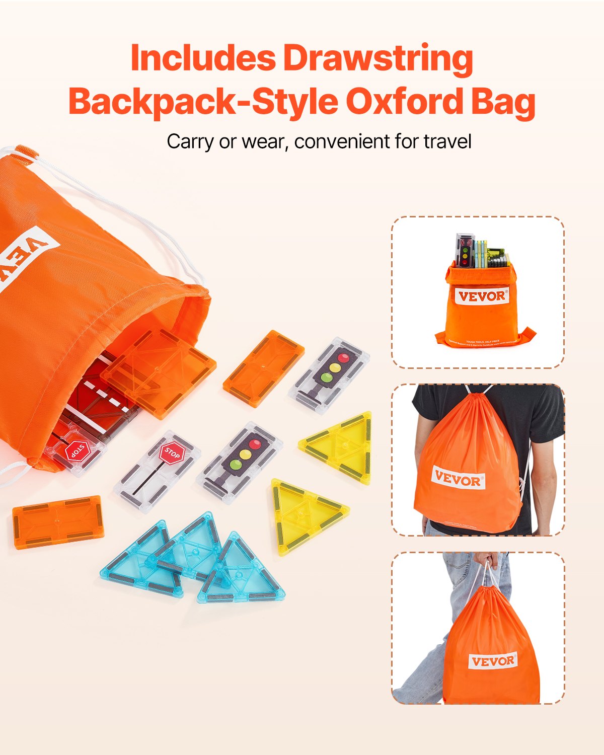 VEVOR Magnetische Bausteine, 56-teilig, magnetische Stra_enbausteine, Magnetspielzeug mit Aufbewahrungstasche, STEM-Sensory-Pädagogisches Stadtkonstruktions-Stapelspielzeug, für Kinder ab 3 Jahren