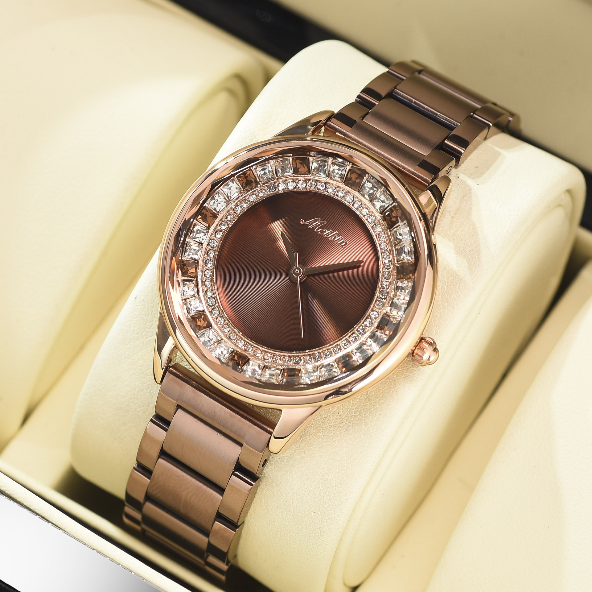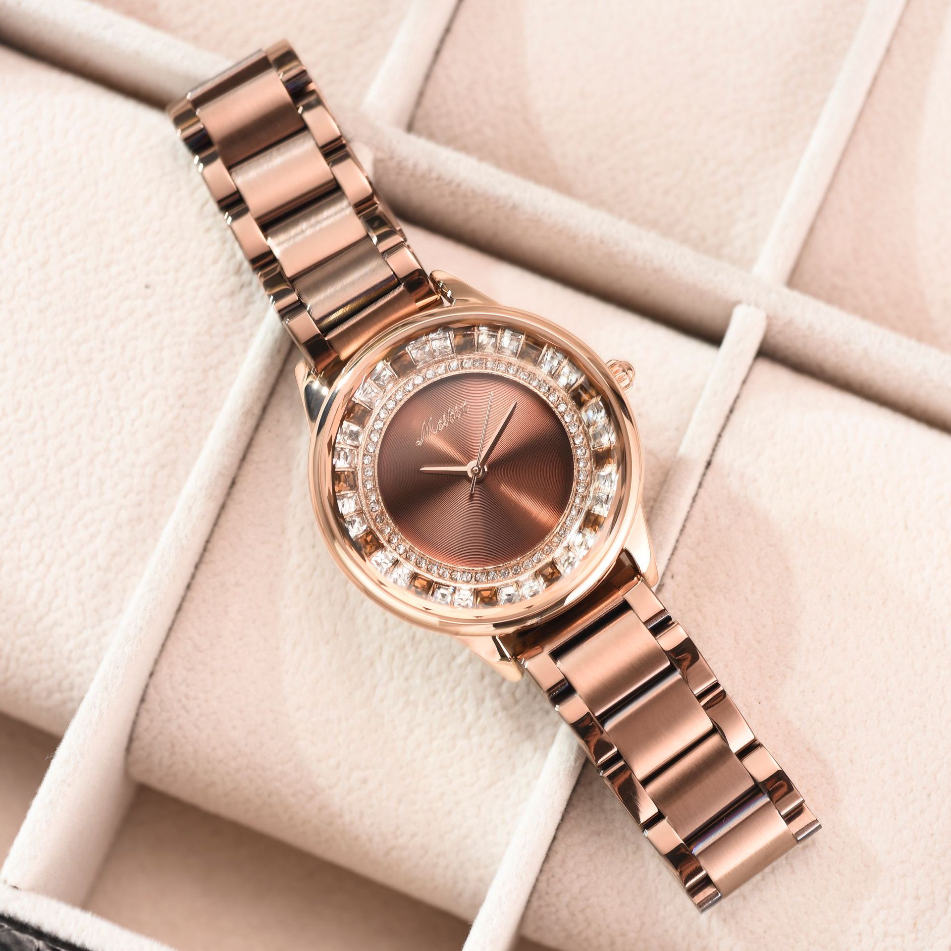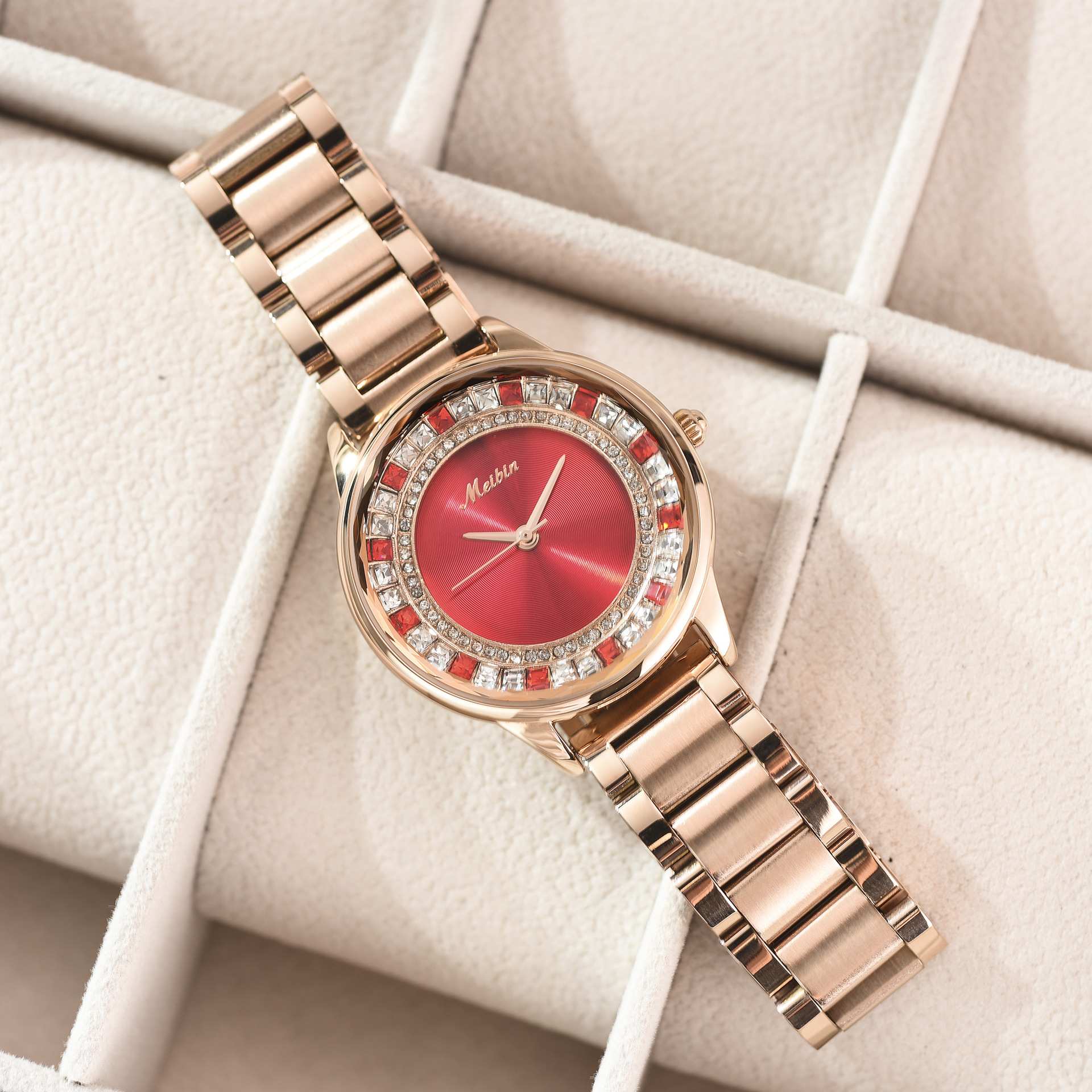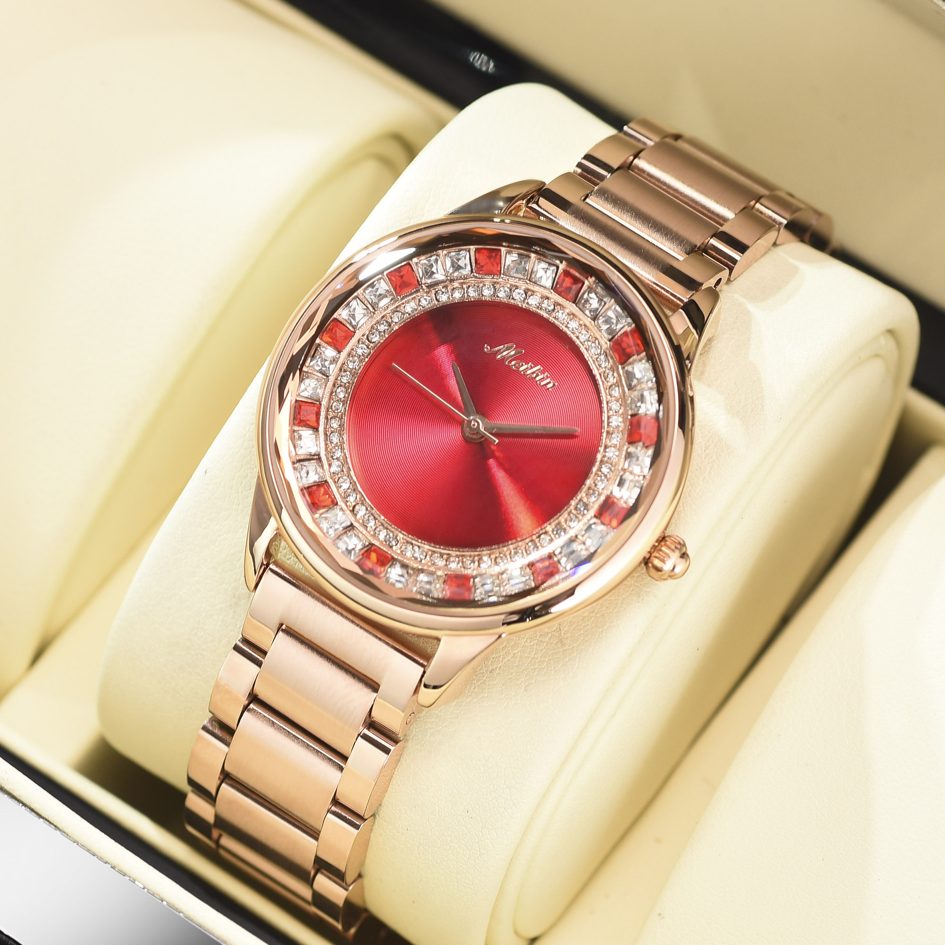 Color: Rose gold solid steel belt with red face and rose gold shell, rose gold solid steel belt with rose gold shell and coffee face
