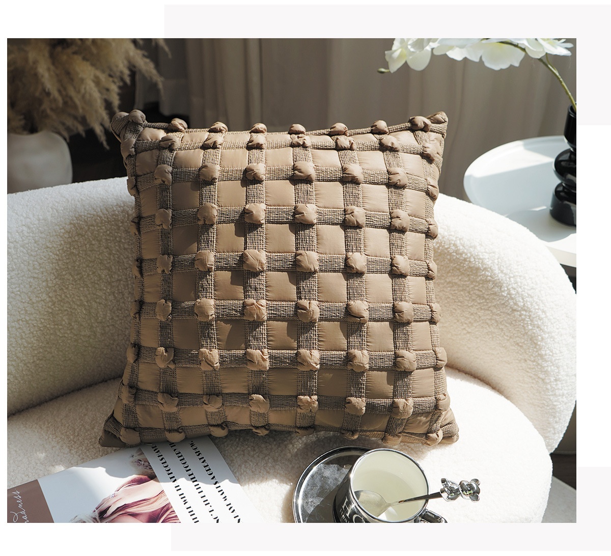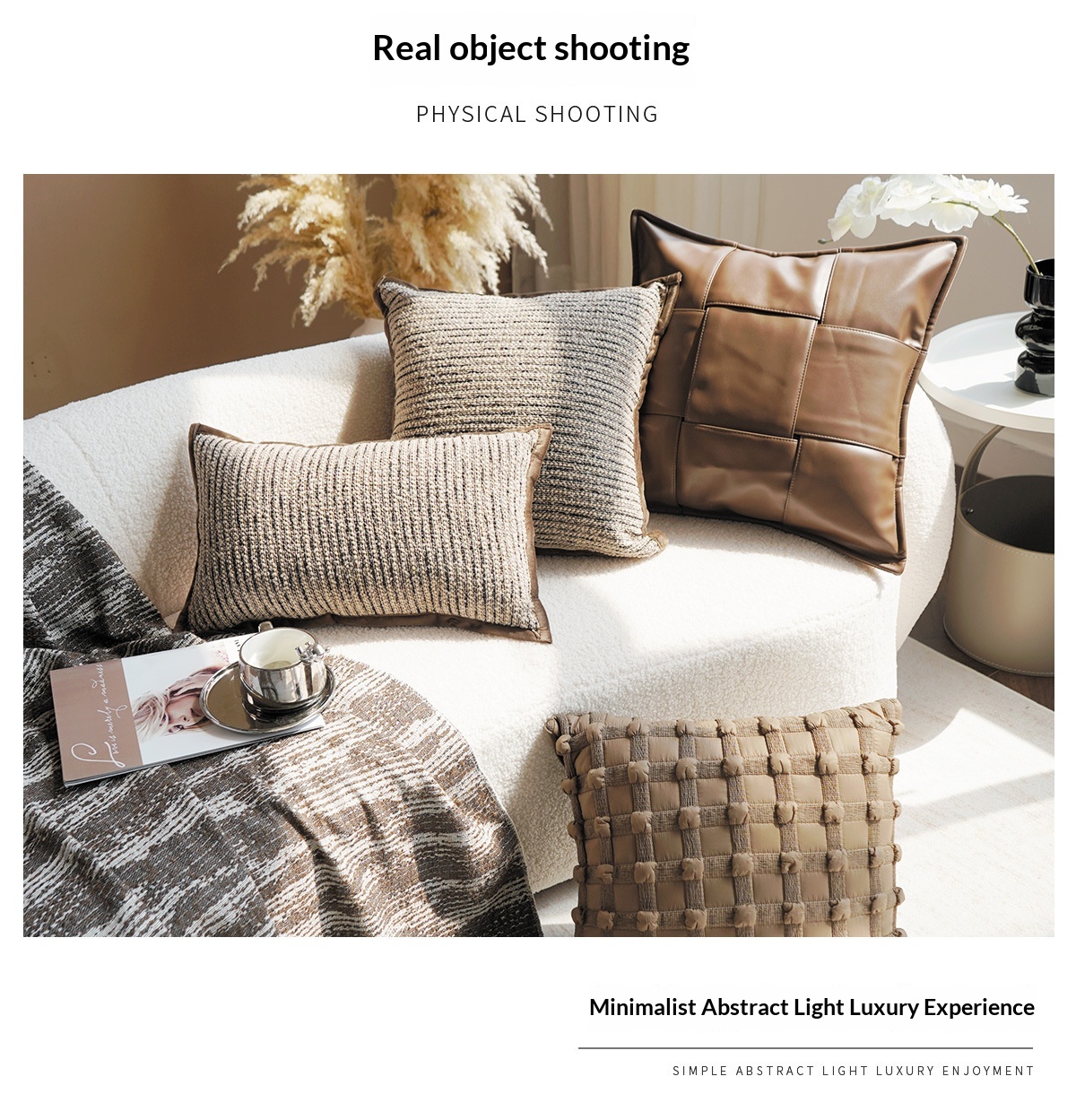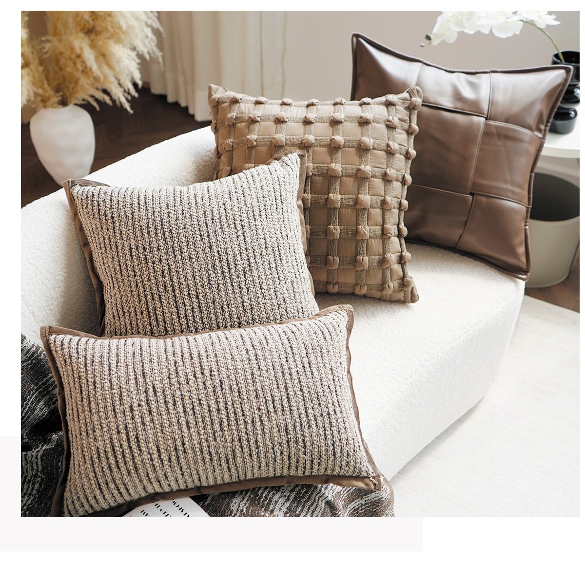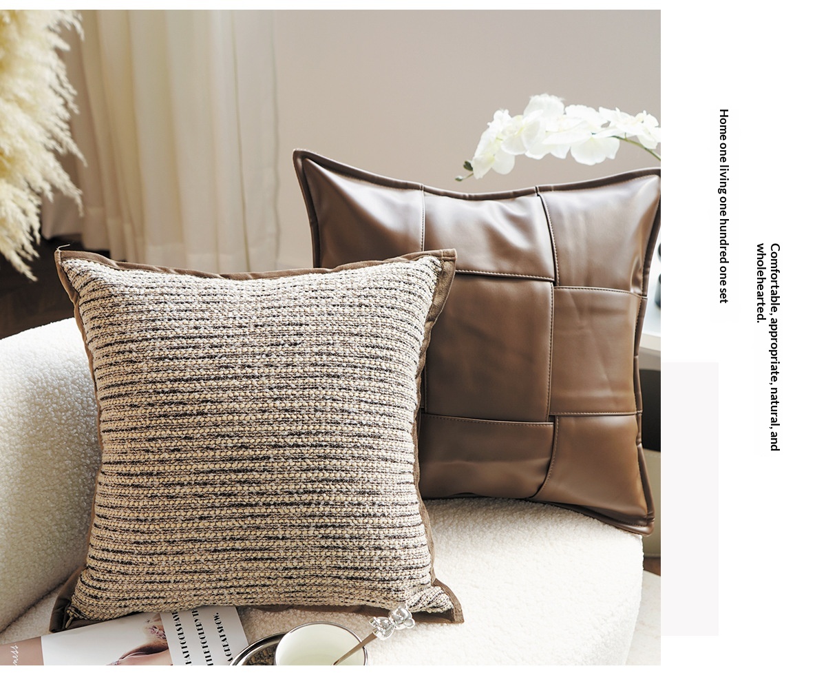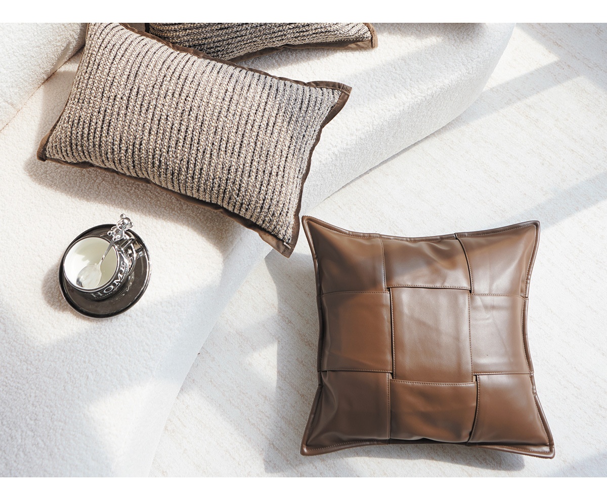 Colors: Coarse-woven stripes, coarse-woven striped lumbar pillow, bubble brown, bubble brown lumbar pillow, leather-woven brown, leather-woven brown lumbar pillow, leather-woven warm orange, leather-woven warm orange lumbar pillow, leather-woven black, leather-woven black lumbar pillow, black base with leopard print, cut-pile brown, rose brown, Dutch velvet woven black, Dutch velvet woven dark coffee, standard pillow insert, upgraded pillow insert, comfort pillow insert, premium pillow insert (with increased weight)