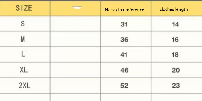 Size: M: Bust 36, Length 16 L: Bust 41, Back Length 18 XL: Bust 46, Length 20 XXL: Bust 52, Length 23