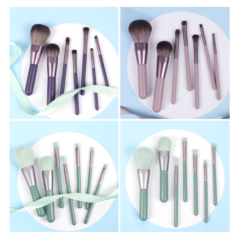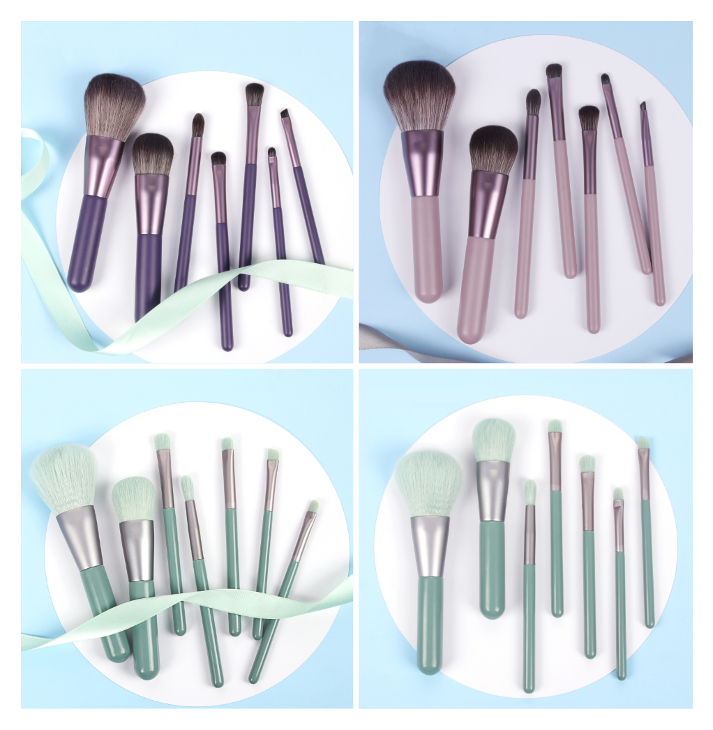 Appearance color: 7 pieces-mint green-makeup brushes, 7 pieces-dark gray brown-makeup brushes, 7 pieces-sandalwood purple-makeup brushes
