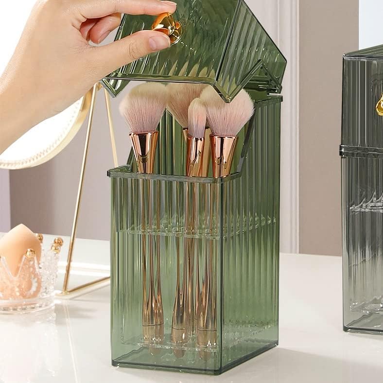 EASY LIFE: With your makeup brushes in this transparent brush holder you can easily get the one you need with the advantage of having your things dirt free due to its secure lid helping to keep dirt and dust out.