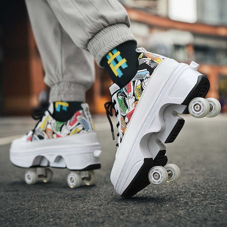 Male And Female Adult Four Wheel Deformation Shoes Student Sports Shoes With Light Pulley
