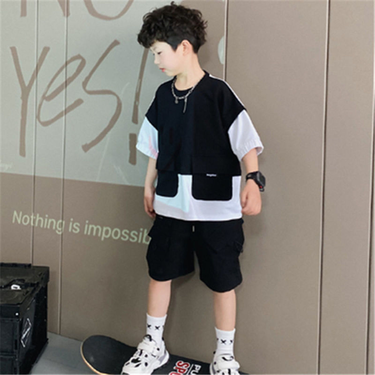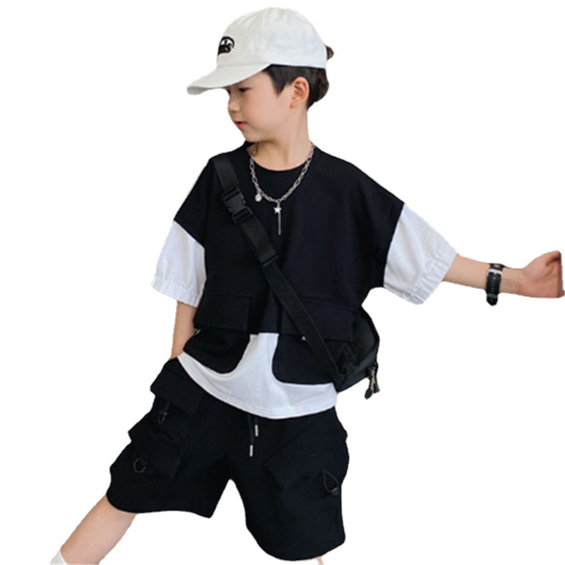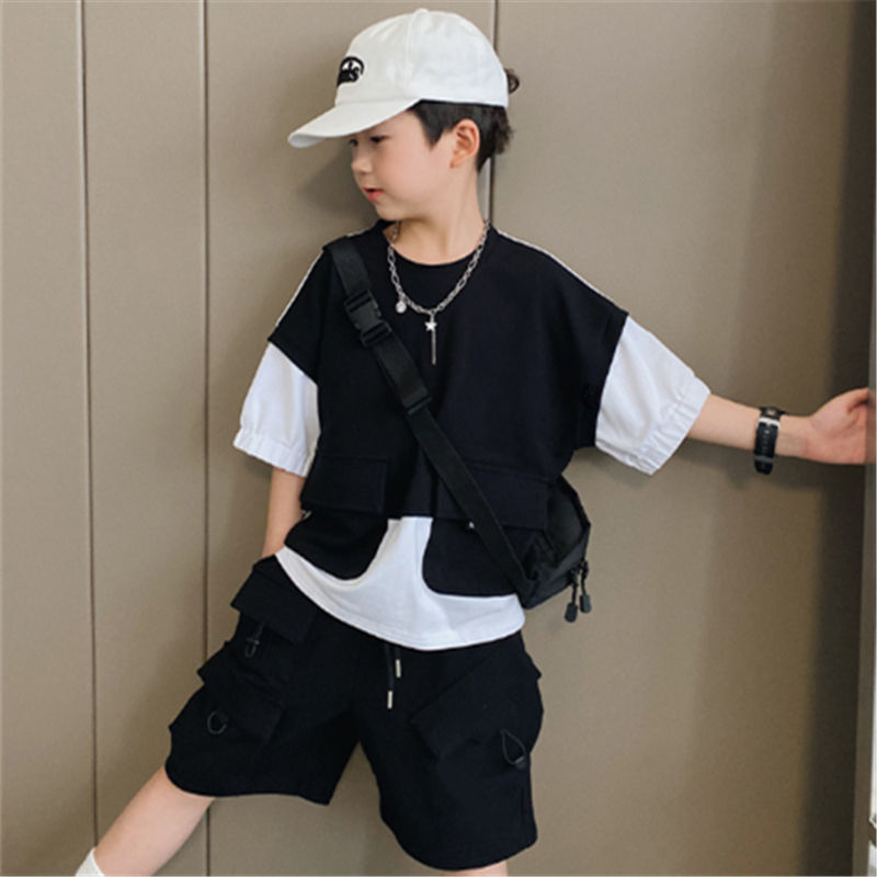 Male Baby Tooling Style Short-sleeved T-shirt Children Fake Two-piece Tops