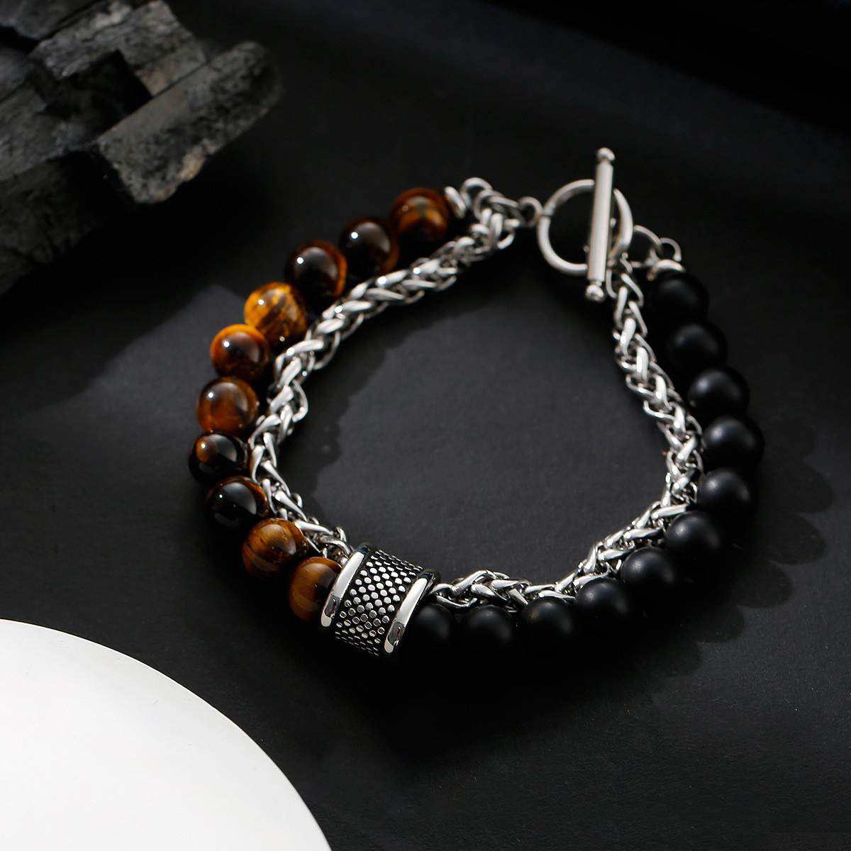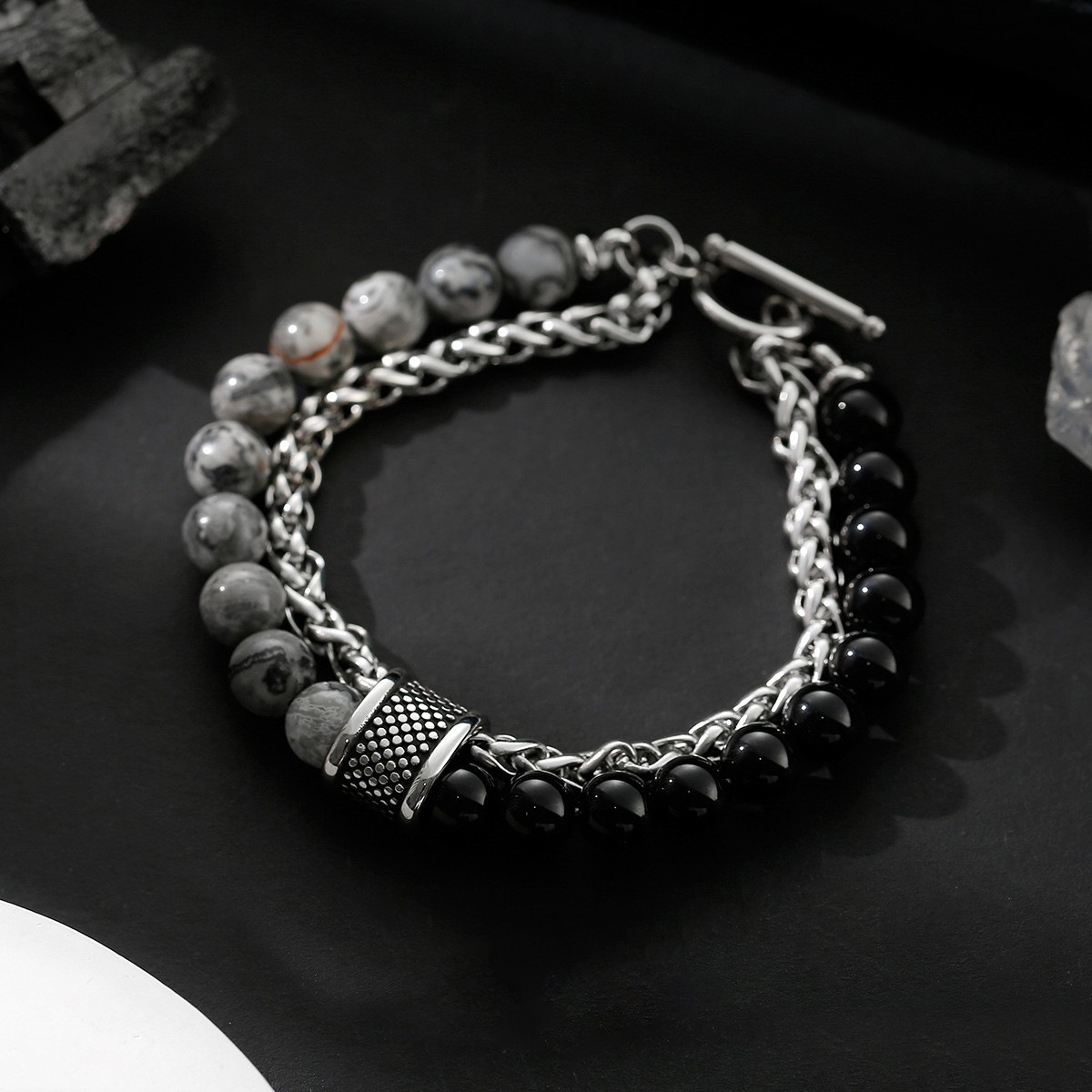 Male Double-layer Bead Buckle Transfer Bead Versatile Bracelet