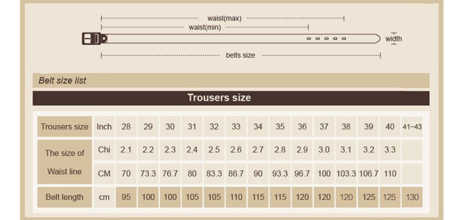 Length (CM); 110cm, 115cm, 120cm, 125cm, 130cm