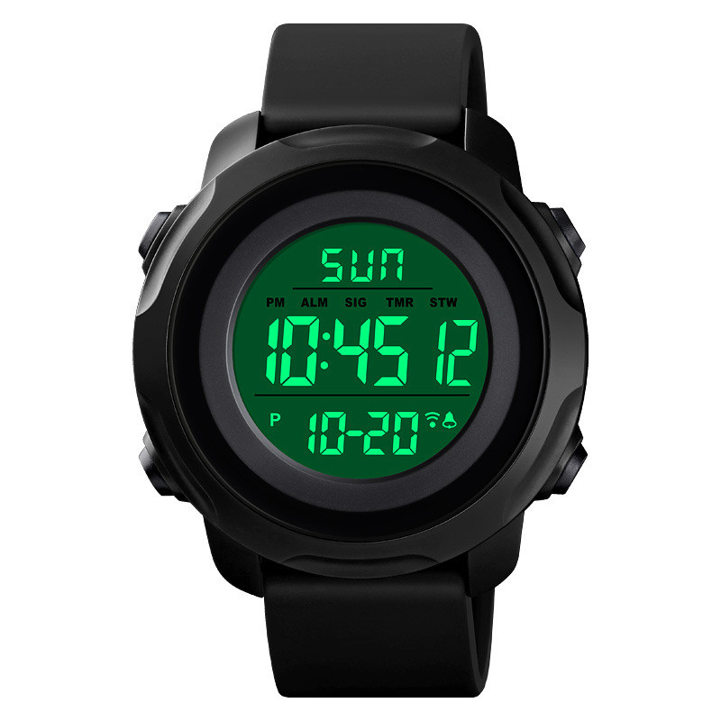Features: dual time, stopwatch timing, night light, display date, timed alarm, display week, hourly time, 12/24 hour clock, countdown.