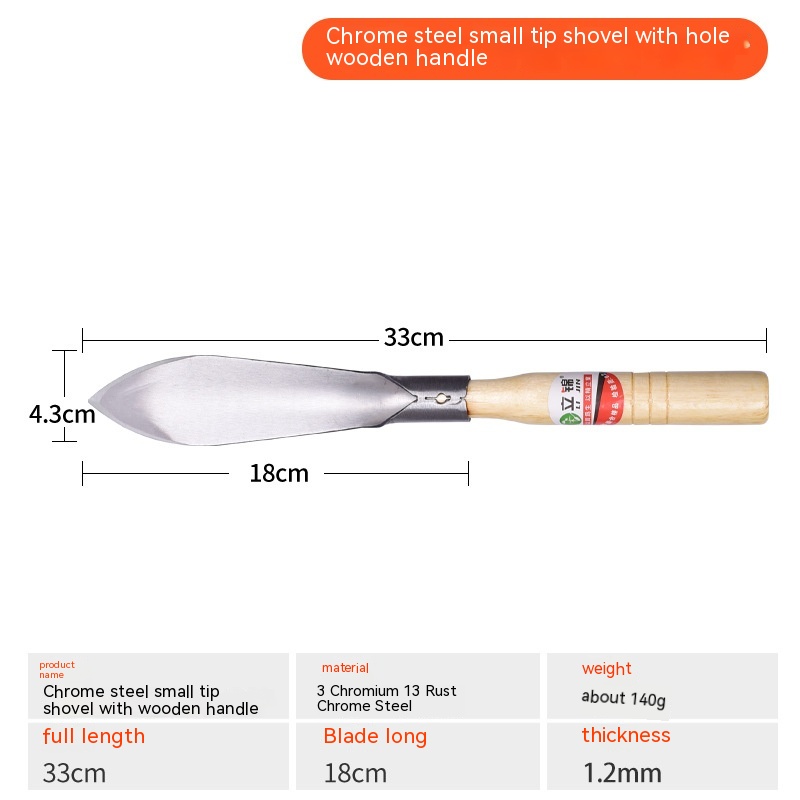 Specifications: manganese steel small tip shovel with grotto wooden handle, manganese steel small flat shovel with grotto wooden handle, chrome steel small tip shovel with grotto wooden handle, chrome steel small square shovel with grotto wooden handle