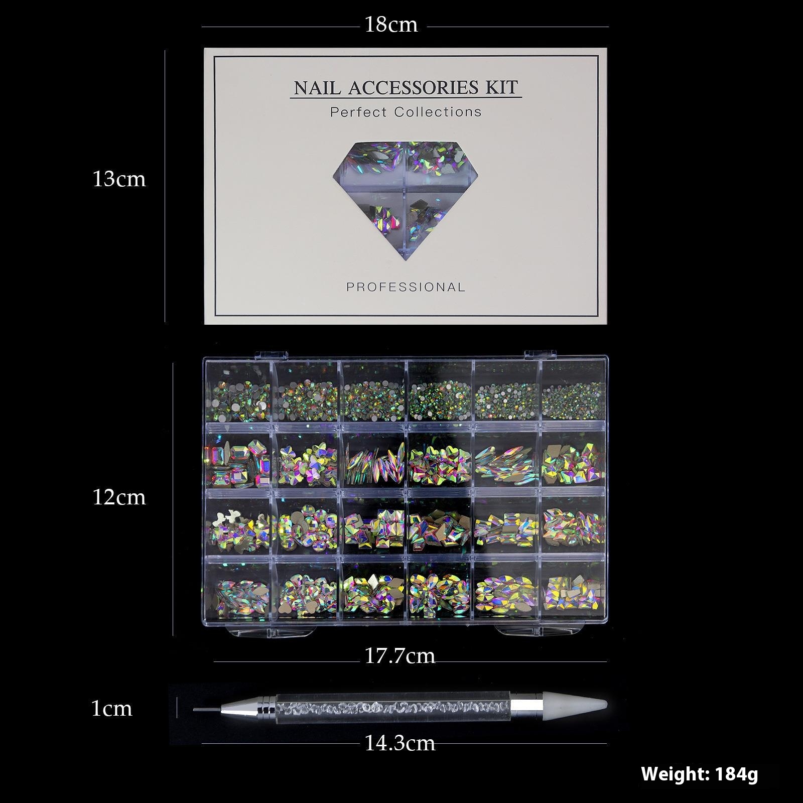 Specifications: 24 grid fancy shape diamonds 01 White Diamond, 24 grid fancy shape diamonds 02AB Diamond, 24 grid fancy shape diamonds 03 dark green, 24 grid fancy shape diamonds 04 dark blue, 24 grid fancy shape diamonds 05 red, 24 grid fancy shape diamonds 06 Champagne, 24 grid fancy shape diamonds 07 pink diamond