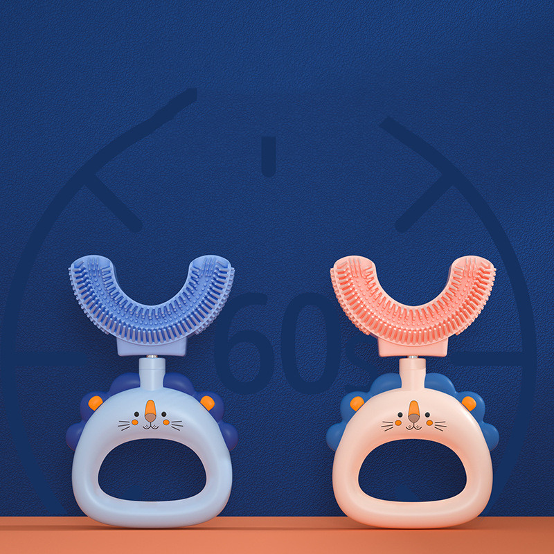 Manual Children's U-shaped Little Lion Silicone Toothbrush