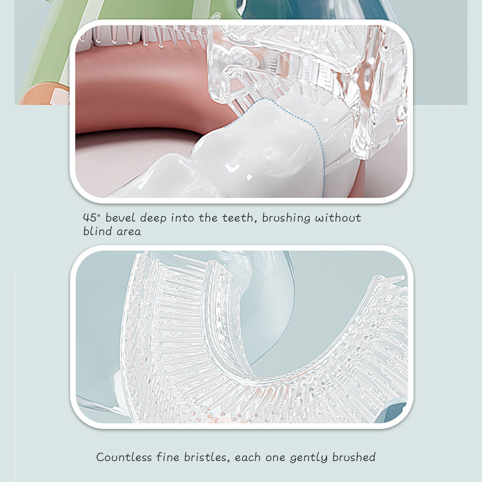 Healthier care: U-shaped brush head design, 360° clean baby's teeth. It is easier for babies to clean their teeth. It cleans teeth from every angle for a healthier mouth.