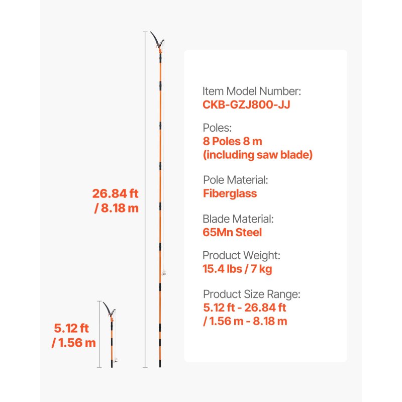 Stable Connection: The push button clip connections ensure secure assembly. Lean the first section on a tree, then add additional sections. The recommended length for trimming is 20ft, about 6 poles. Wearing a back support is suggested for extended use