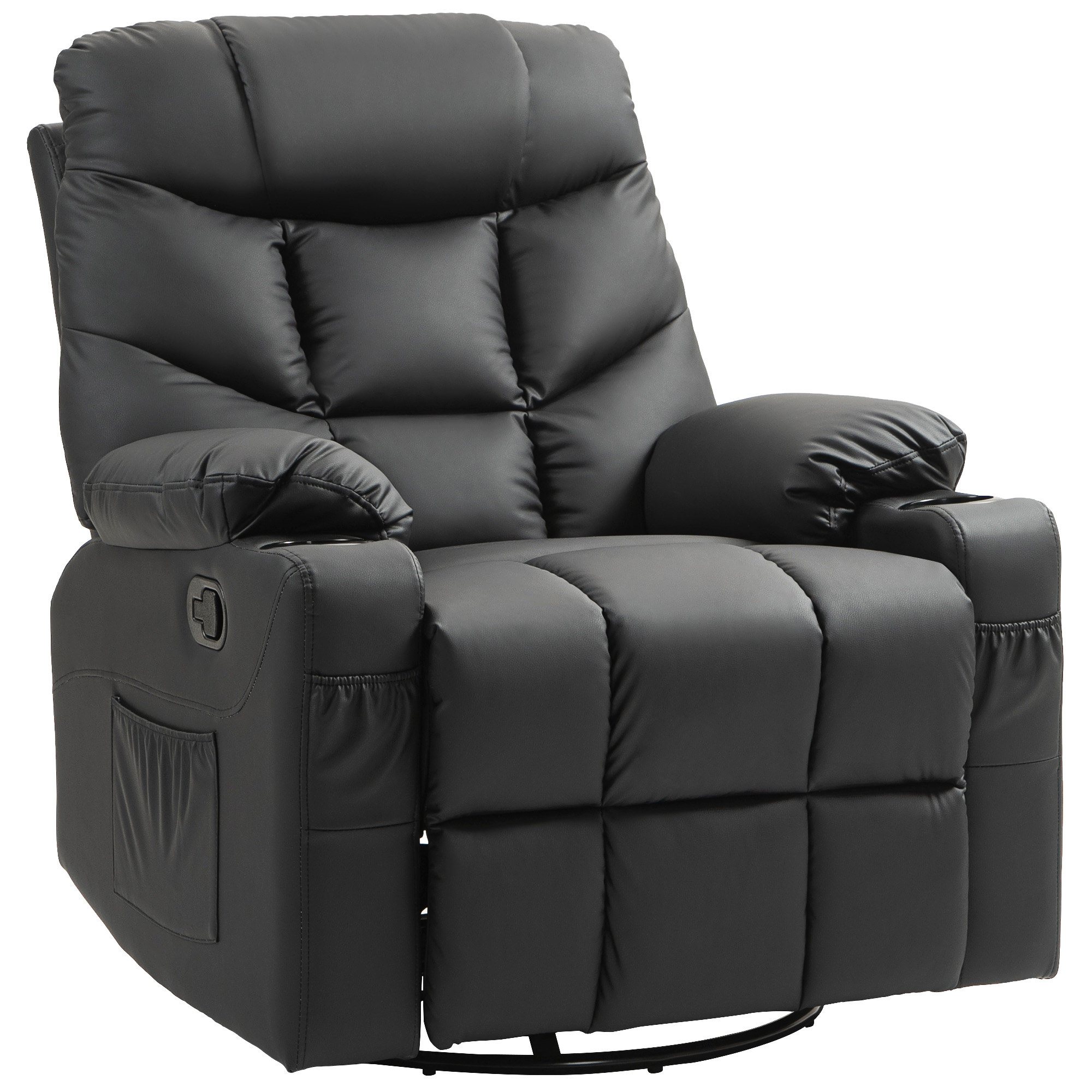 knows the first thing you want to do after a long work day, is relax. This cinema chair gives you the perfect spot to do that. A large square shape to give you plenty of room to sit, it thickly padded all over - simply sit down and sink in. Features a 135° reclining back, with manual footrest for extra relaxation. Faux leather upholstery for style, complete with two cup holders and two pockets for handiness.