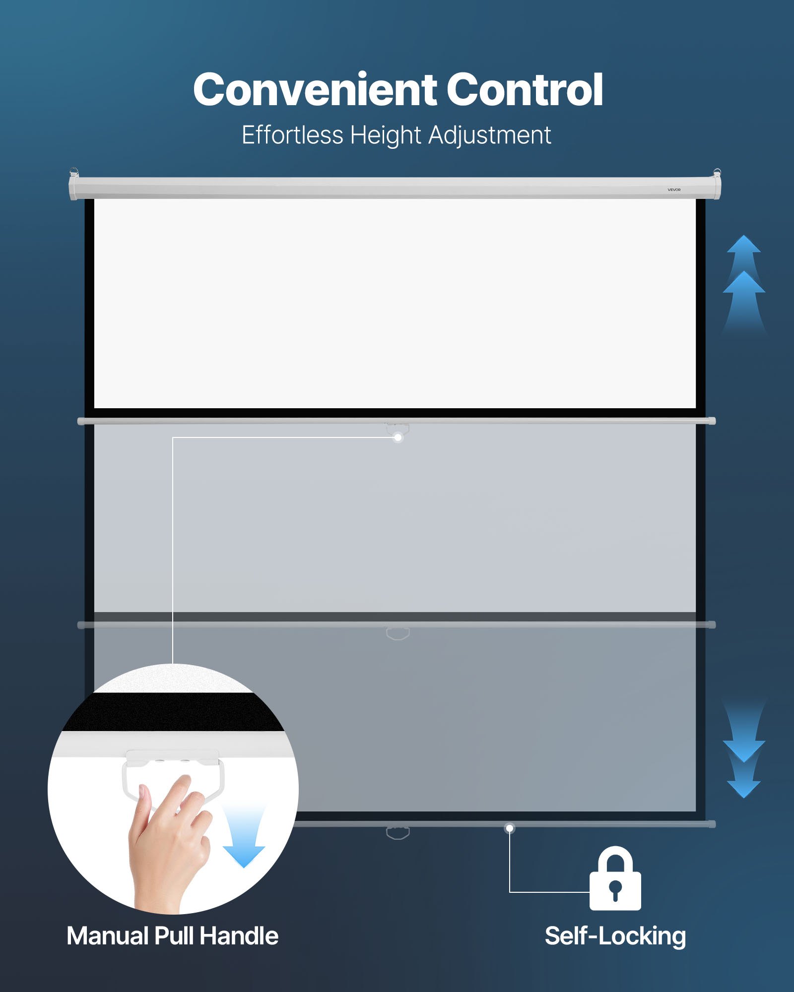VEVOR manuelle Projektionsleinwand Beamer Leinwand, 120 Zoll 1:1 4K 1080 HD, einziehbare Projektionsleinwand, wandmontierte Filmprojektion mit Zugseil, tragbare Rolloleinwand Heimkino