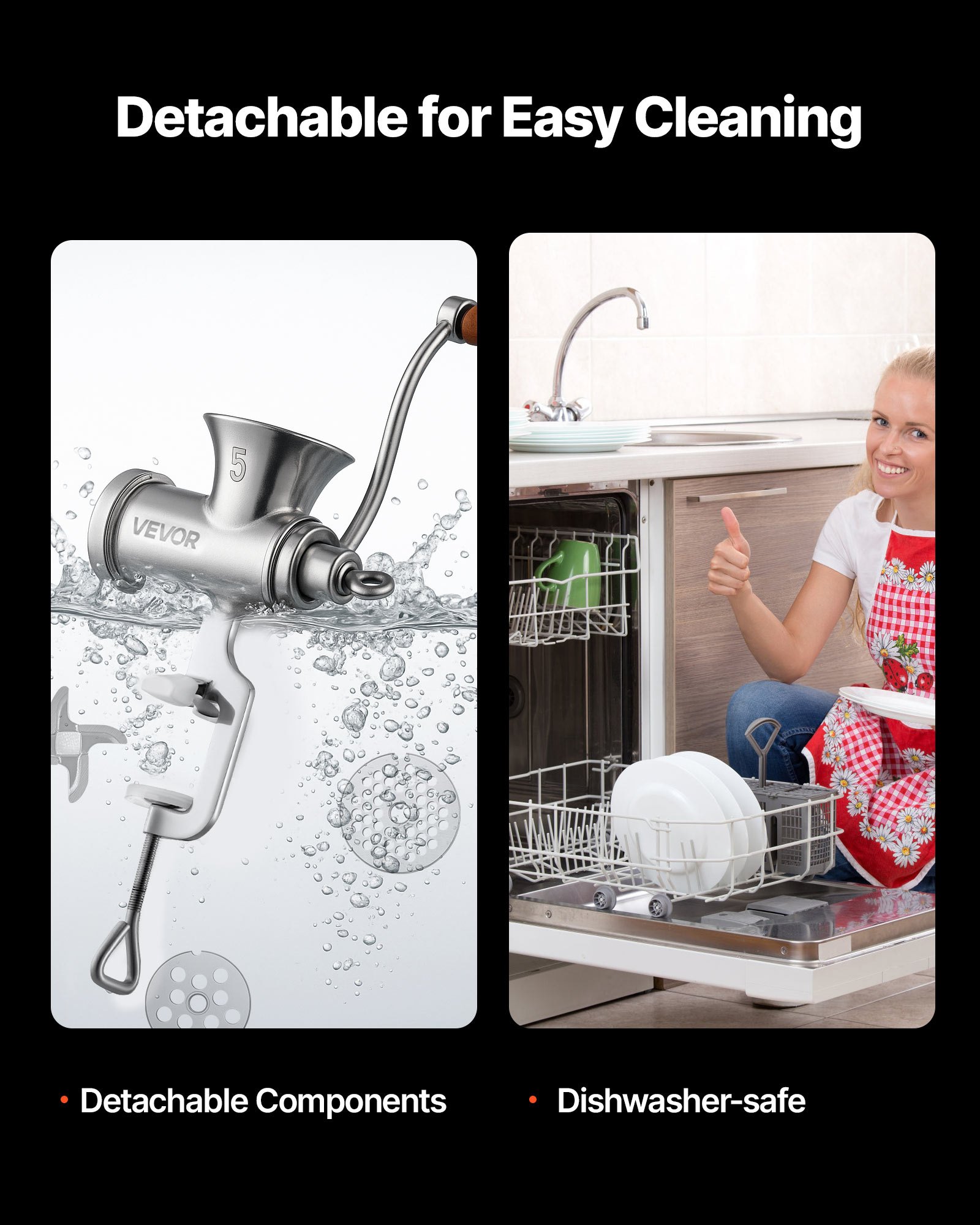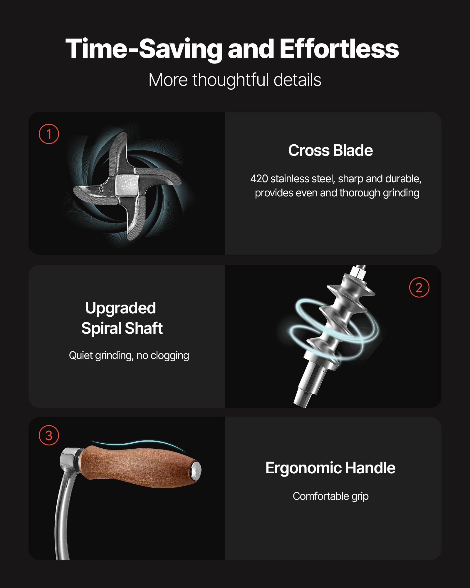 VEVOR manueller Fleischwolf mit Handkurbel Wurstfüller aus Edelstahl 304 mit Tischklemme aus Stahl, Fleischmühle mit 2 Schneidplatten (4,5/8 mm) & 4 Wurströhren, Lebensmittelwolf für Küchentisch