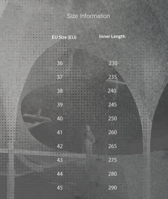 Sizes: 36, 37, 38, 39, 40, 41, 42, 43, 44, 45