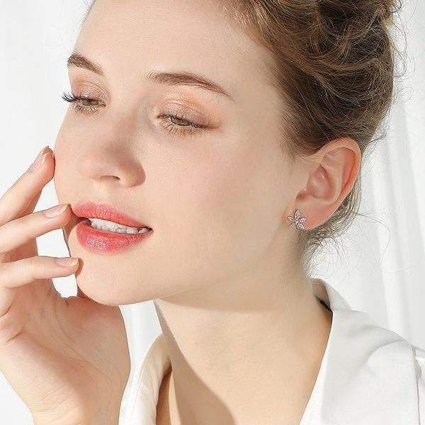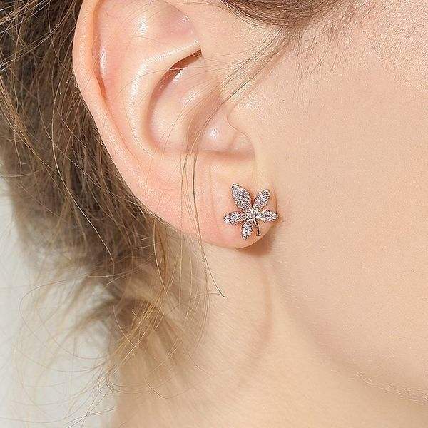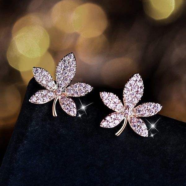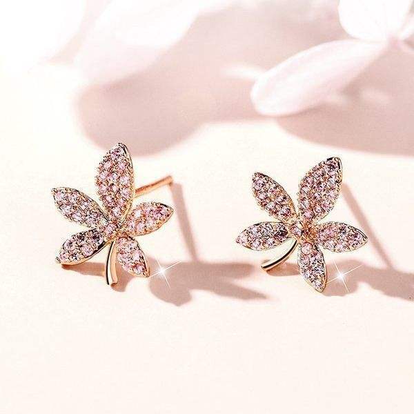 Maple Leaf Diamond Silver Stud Earrings For Women Simple Cold Style