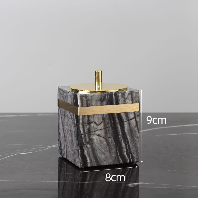 3style: Earl Black Gold Bar Square Cotton Swab Box, Marble