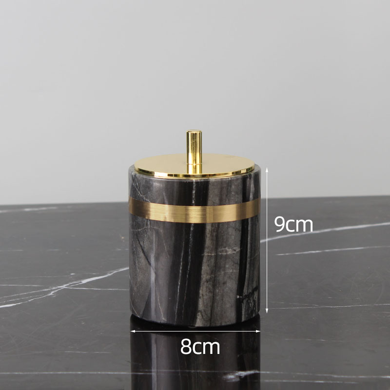 4style: Piaget Black Gold Bar Round Cotton Swab Box, Marble