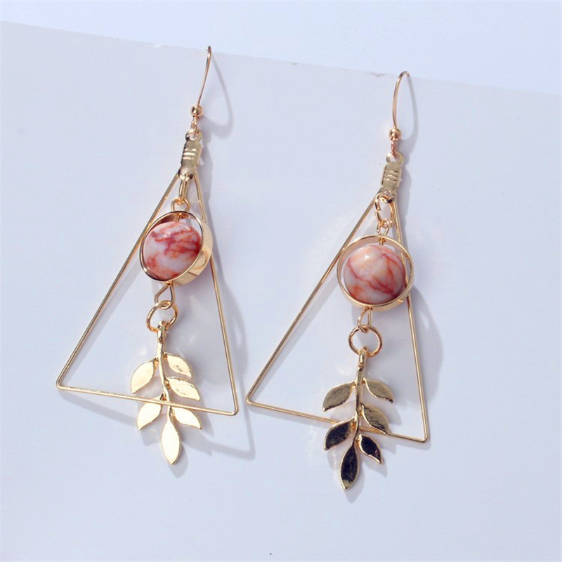 Product name: hollow triangle marble round bead earringsMaterial: alloyProduct color: goldProduct size: length :7.6cm