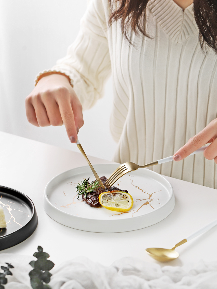 Material: potteryStyle: Nordic styleShape: roundApplicable object: AdultPlate type: Flat plate tea tablewareProcess: Underglaze