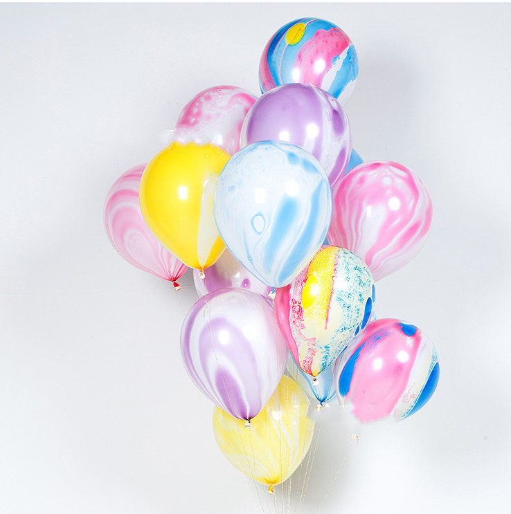 Thick pink agate balloons, thick blue agate balloons, thick yellow agate balloons, thick green agate balloons, thick purple agate balloons, thick black agate balloons, one thick color balloon, 10 mixed color agate balloons, 1 set of balloons (accommodating 7 balloons) )