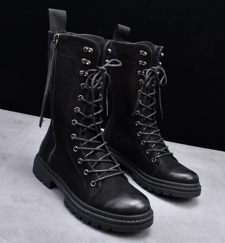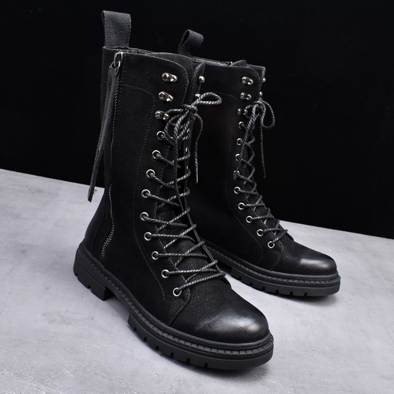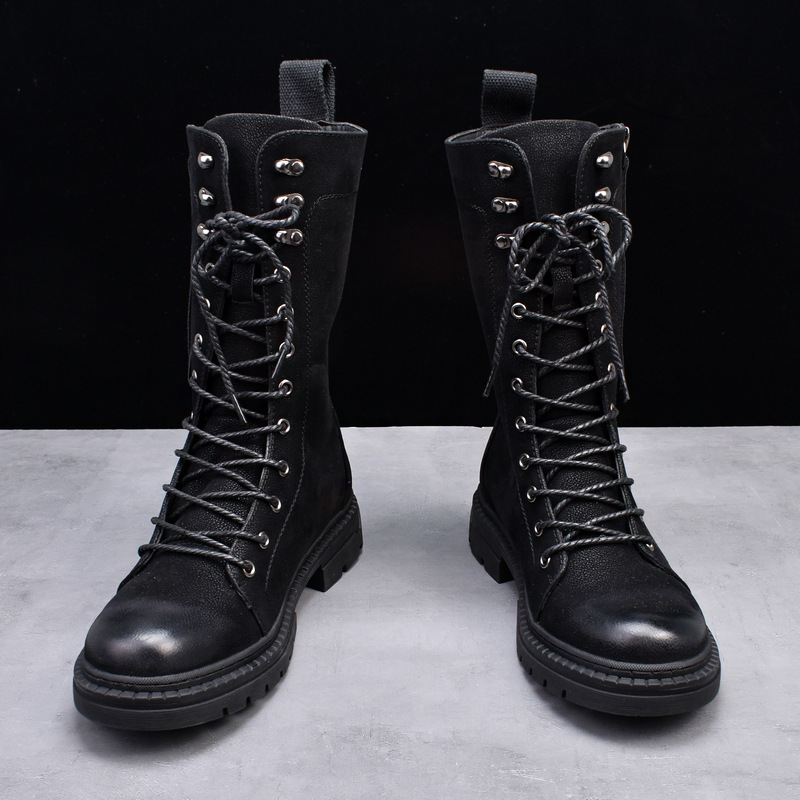 Martin Boots Round Toe Middle Tube Leather Boots Men's Cowboy Boot