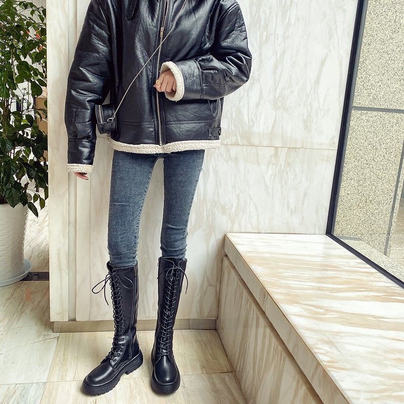 Martin Boots Women's Chunky Heel Autumn And Winter British Style Strap Knight Boots