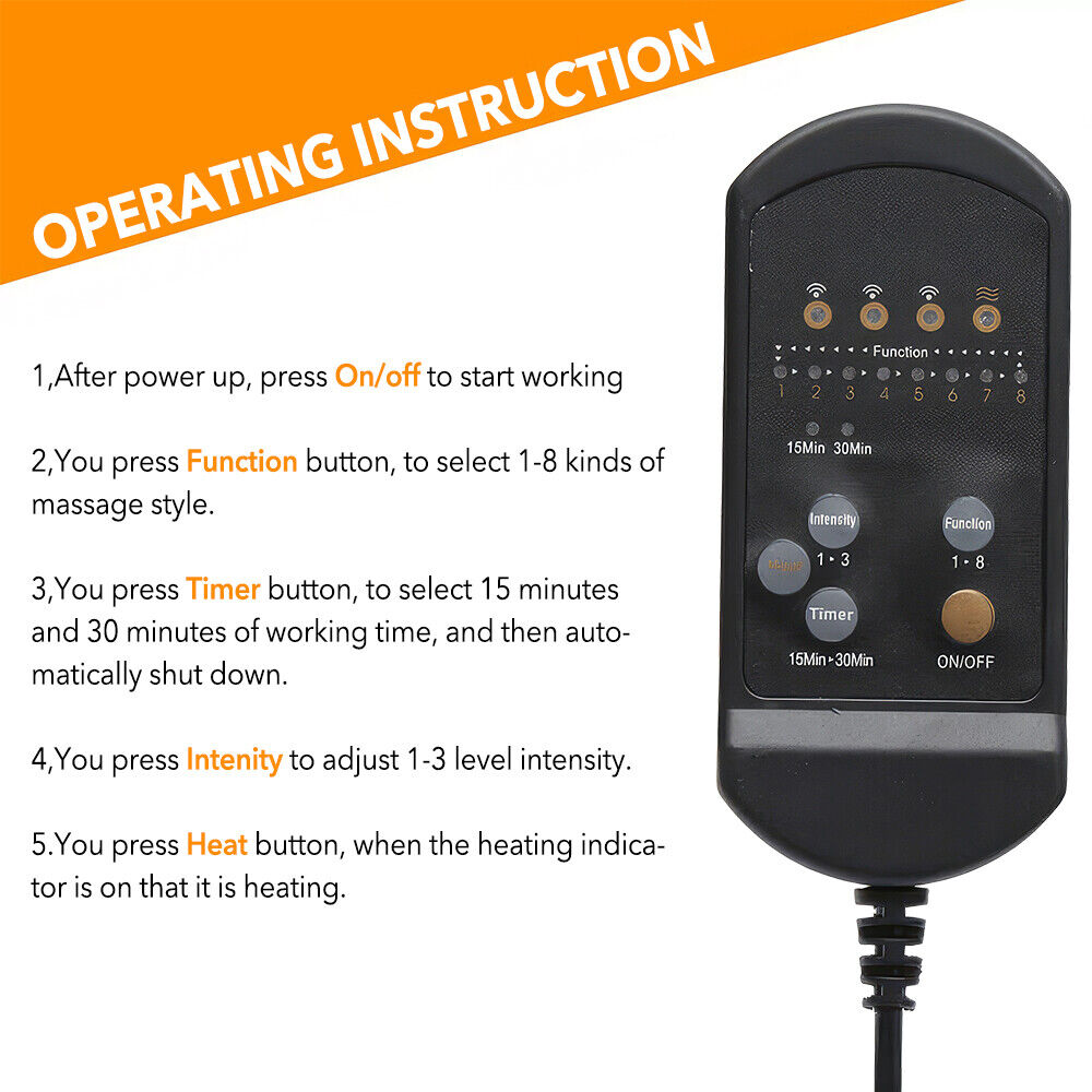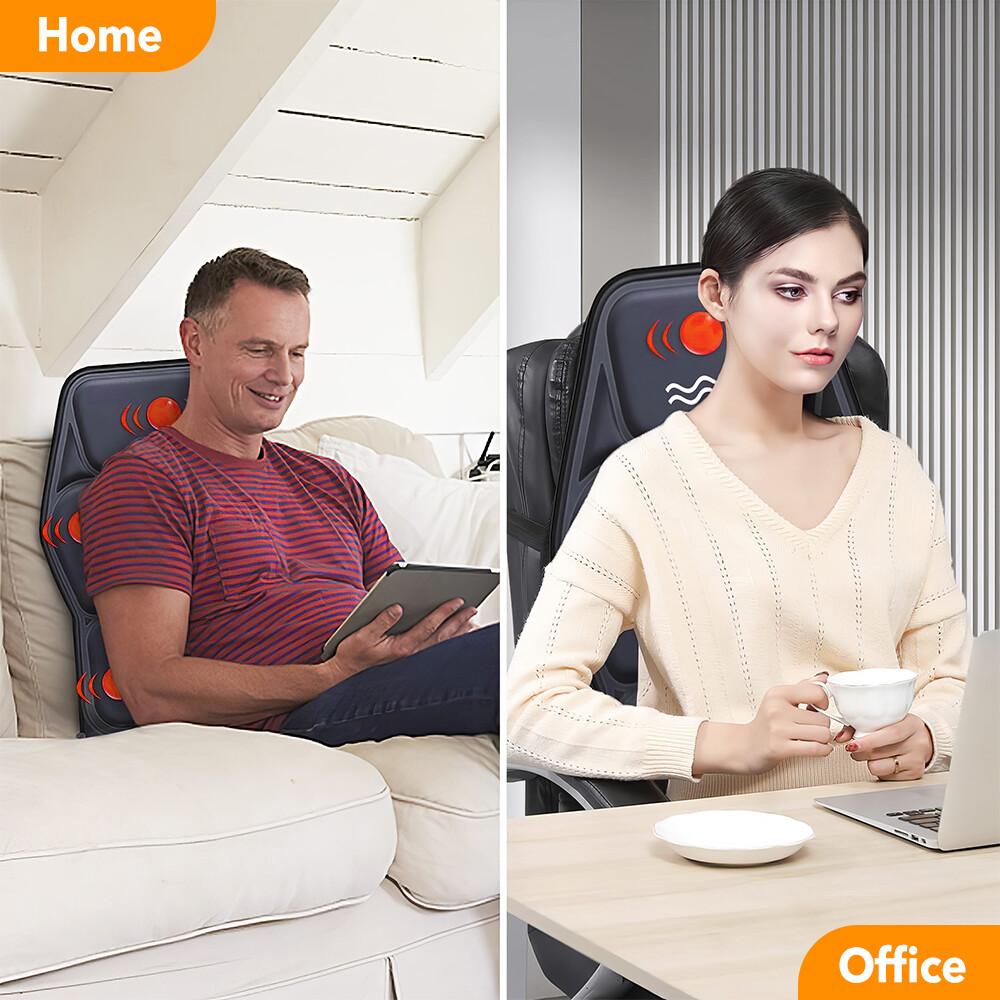 Massage Cushion Full Back Car Home Chair Seat Pad Mat 8 Modes Neck Heat Massager