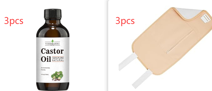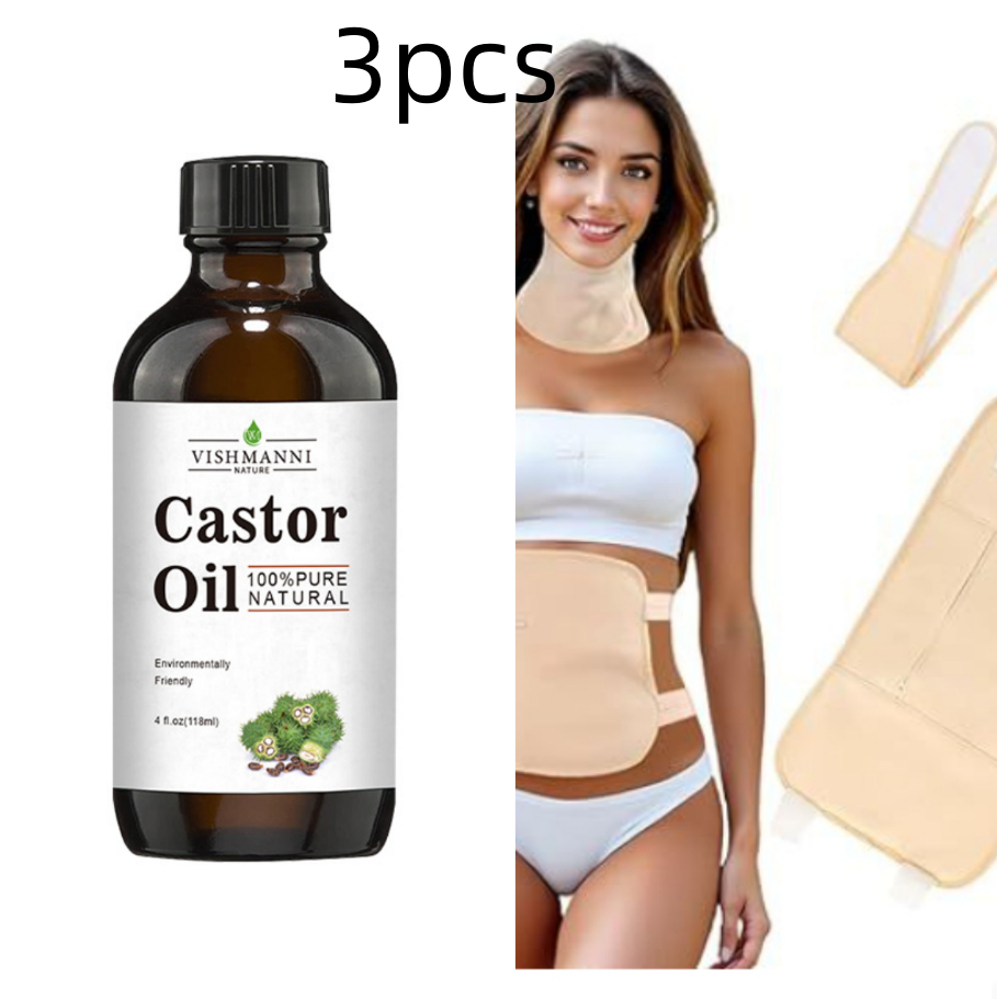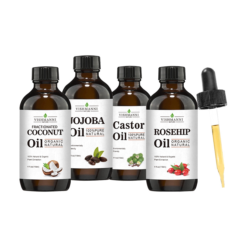 Product specifications: 118ml of golden jojoba oil, 118ml of fractionated coconut oil, 118ml of castor oil and 118ml of rose hip oil.