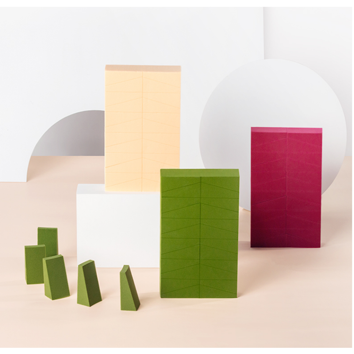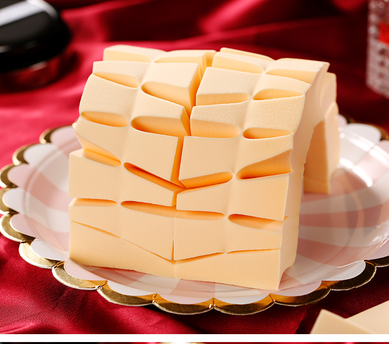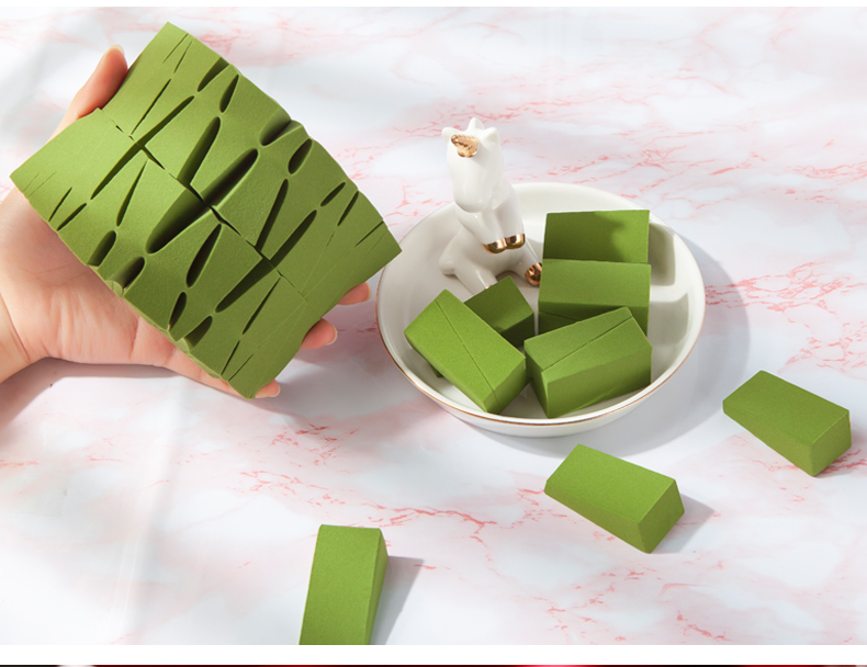 Color classification: Matcha 24 cut triangular sponge, wine red 24 cut triangular sponge, nude 24 cut triangular sponge