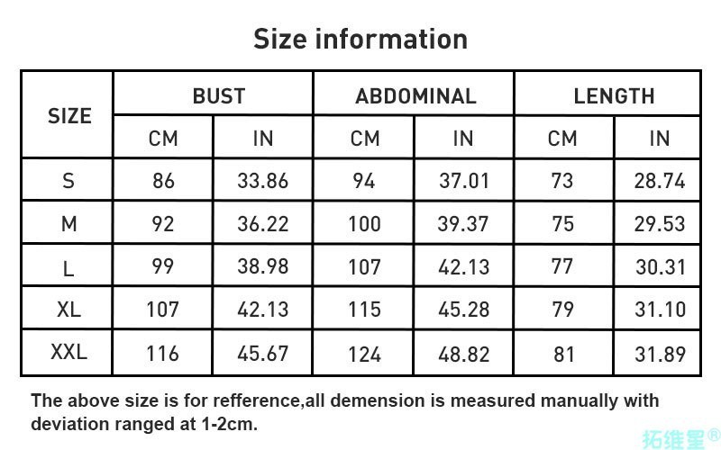 1. Asian sizes are 1 to 2 sizes smaller than European and American people. Choose the larger size if your size between two sizes. Please allow 2-3cm differences due to manual measurement. 2. Please check the size chart carefully before you buy the item, if you don't know how to choose size, please contact our customer service. 3.As you know, the different computers display colors differently, the color of the actual item may vary slightly from the following images.