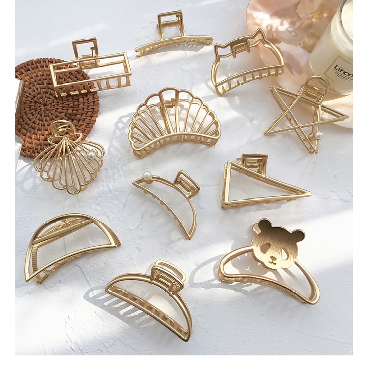 Color: A pearl shell, B scallop shell, C rectangle, D arc 2, E oblique triangle, F semicircle, G cat, H arc 2 pearl,