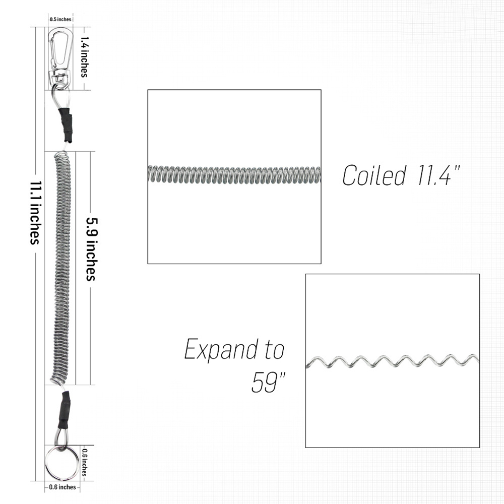 2.Heavy Duty Lanyard] Made of steel wires covered with PVC which can be recovered 95% as it is, when you stretch the Booms Fishing coiled lanyard to its full extent, but the other normal one without steel wire can't be recovered