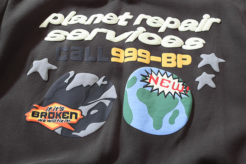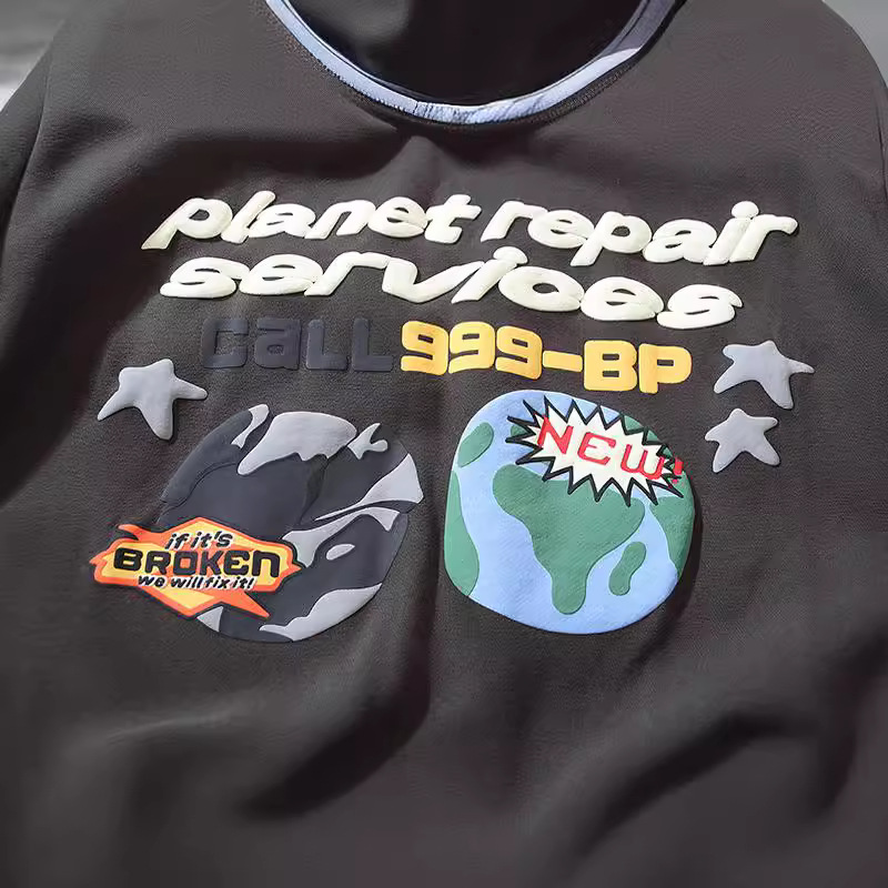 Maychao High Street Broken Planet Puff Print High Street Men's And Women's Loose Casual Hooded Sweater