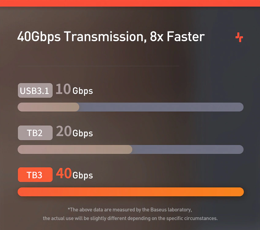 Type-C: Left and right sides (supports data transmission up to 40Gbps), Side view supports data transmission up to 5Gbps]