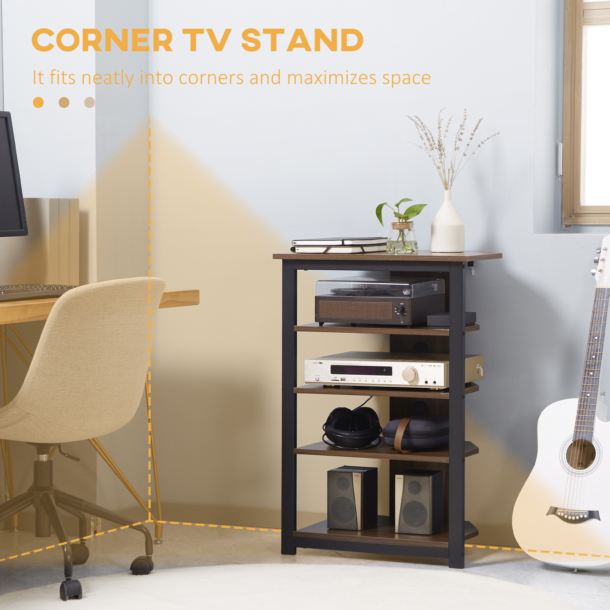 Media Stand With 4-Tier Audio Rack AV Media Corner Shelf With Cable Management For DVD Players Game Console TV Box Cable Box Xbox WiFi Router, Brown