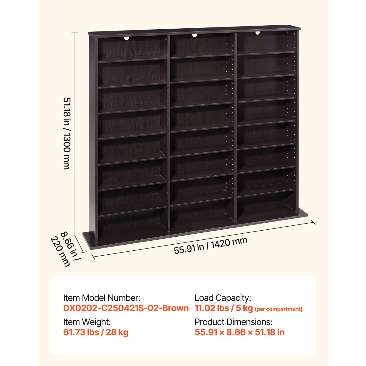 Large-Capacity Storage: The spacious interior and a space-efficient layout maximize every inch of storage. Our movie shelf easily holds multiple CD collections, delivering high storage efficiency in a compact space