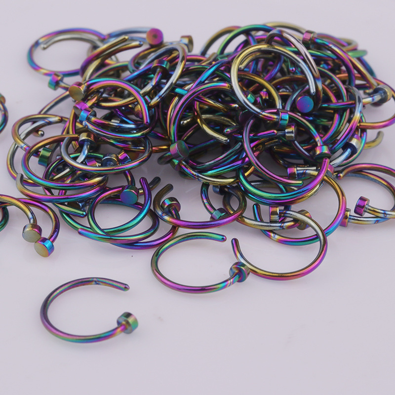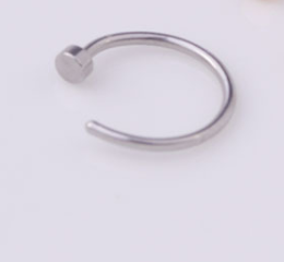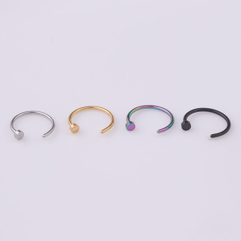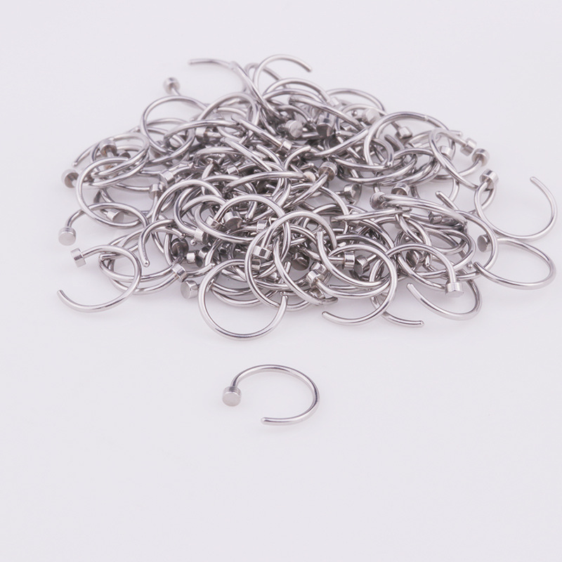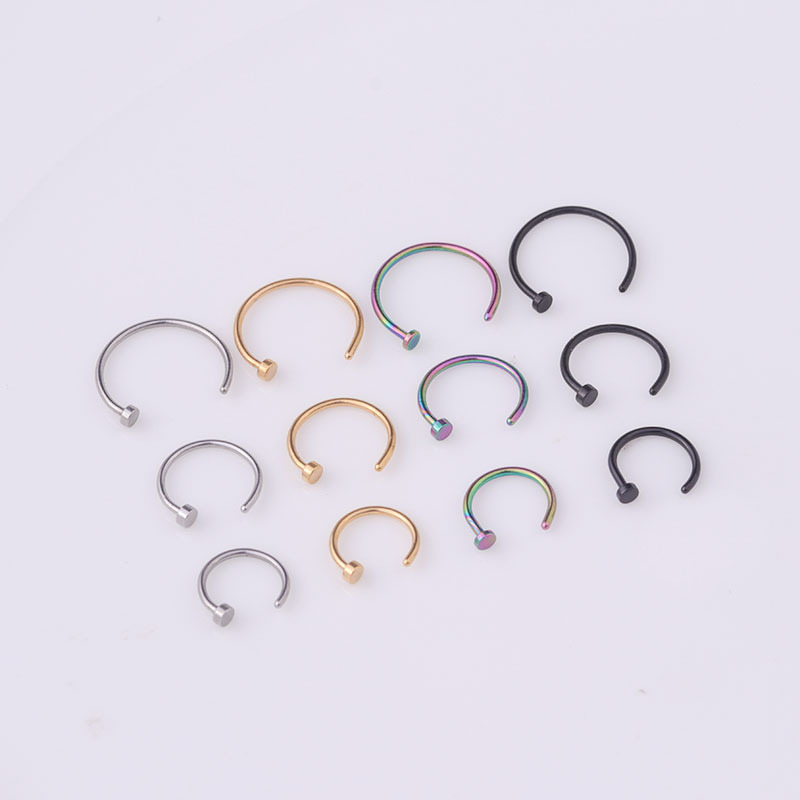 size:S: 6mmM: 8mmL: 10mmMaterial: 316L medical stainless steelStyle: C-shaped nose nail, nose ringPacking: into OPP bag