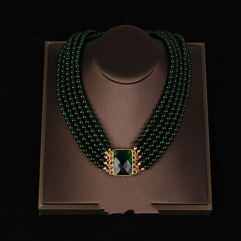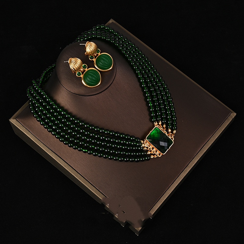 Medieval Exaggerated Green Crystal Glass Multi-layer Stacking Set
